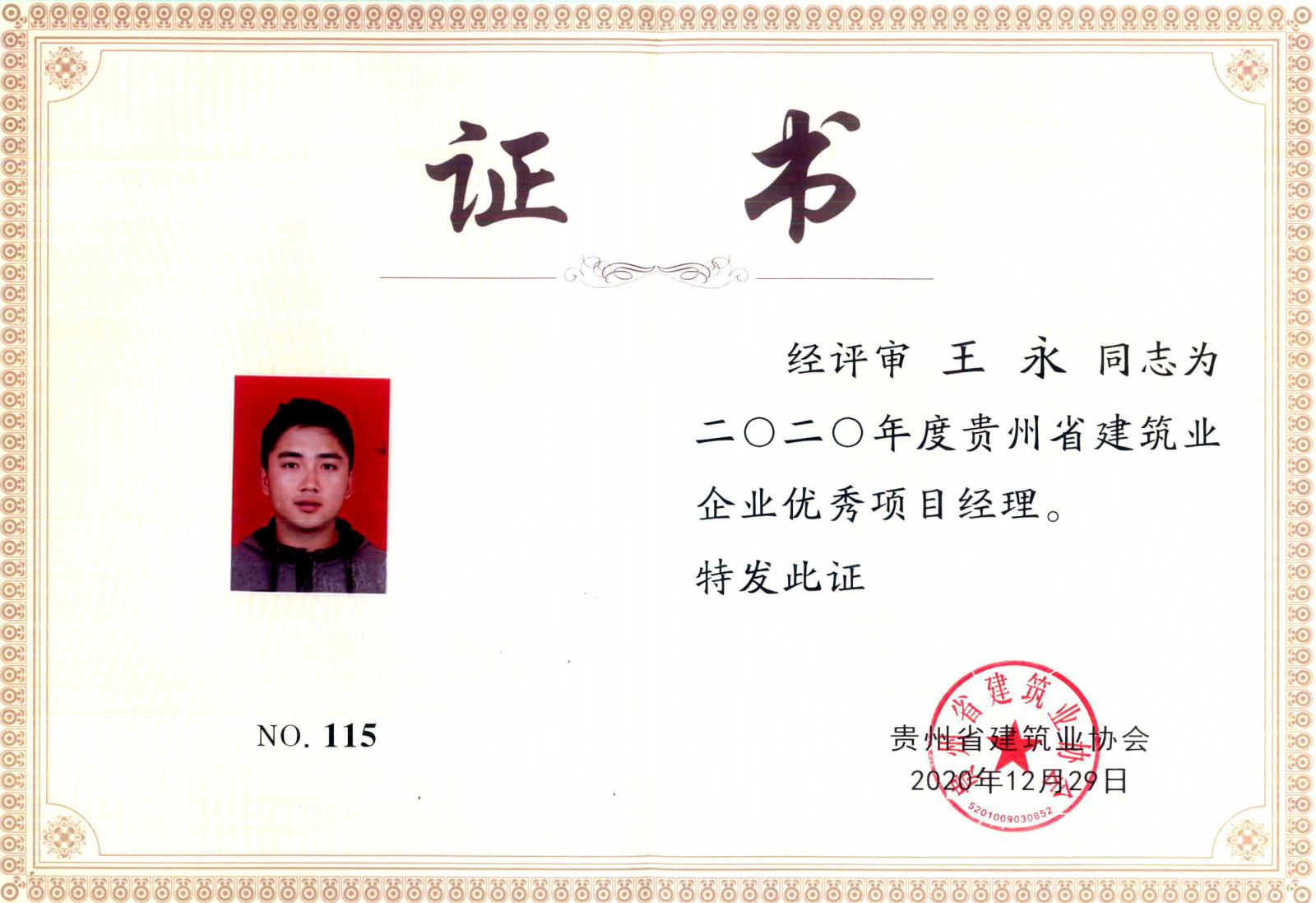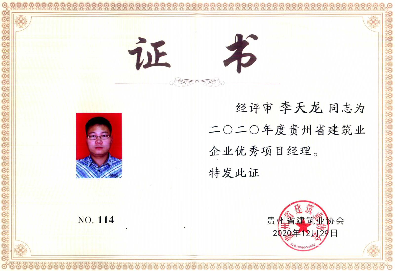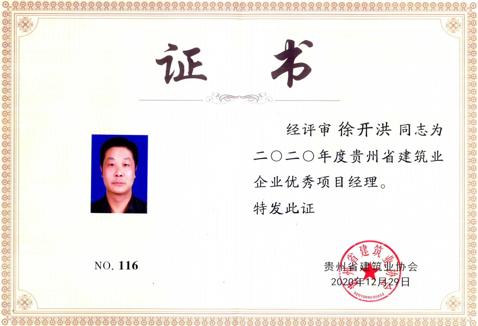 2020年度貴州省建筑業(yè)企業(yè)優(yōu)秀項目經理