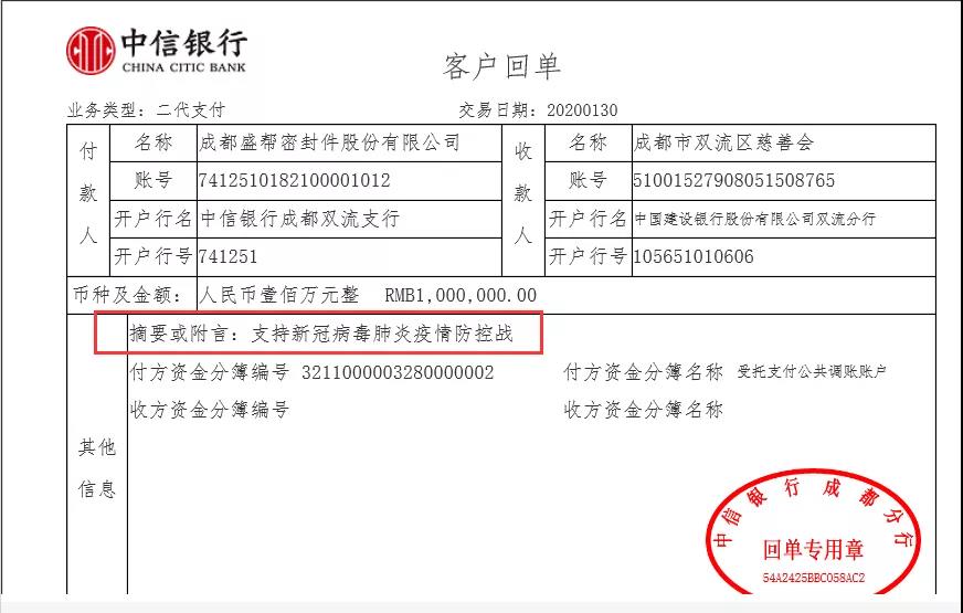 元抗擊疫情中汽聯(lián)副會長、盛幫密封件股份有限公司捐款1000000