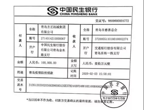 71、濟(jì)南旭勝汽車零部件有限公司 捐款100元