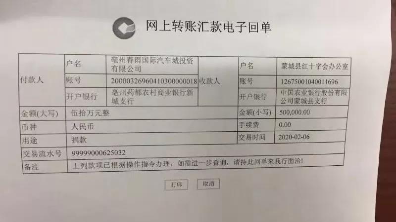 ☆ 亳州市譙順汽車配件銷售有限公司總經(jīng)理劉坤 500元