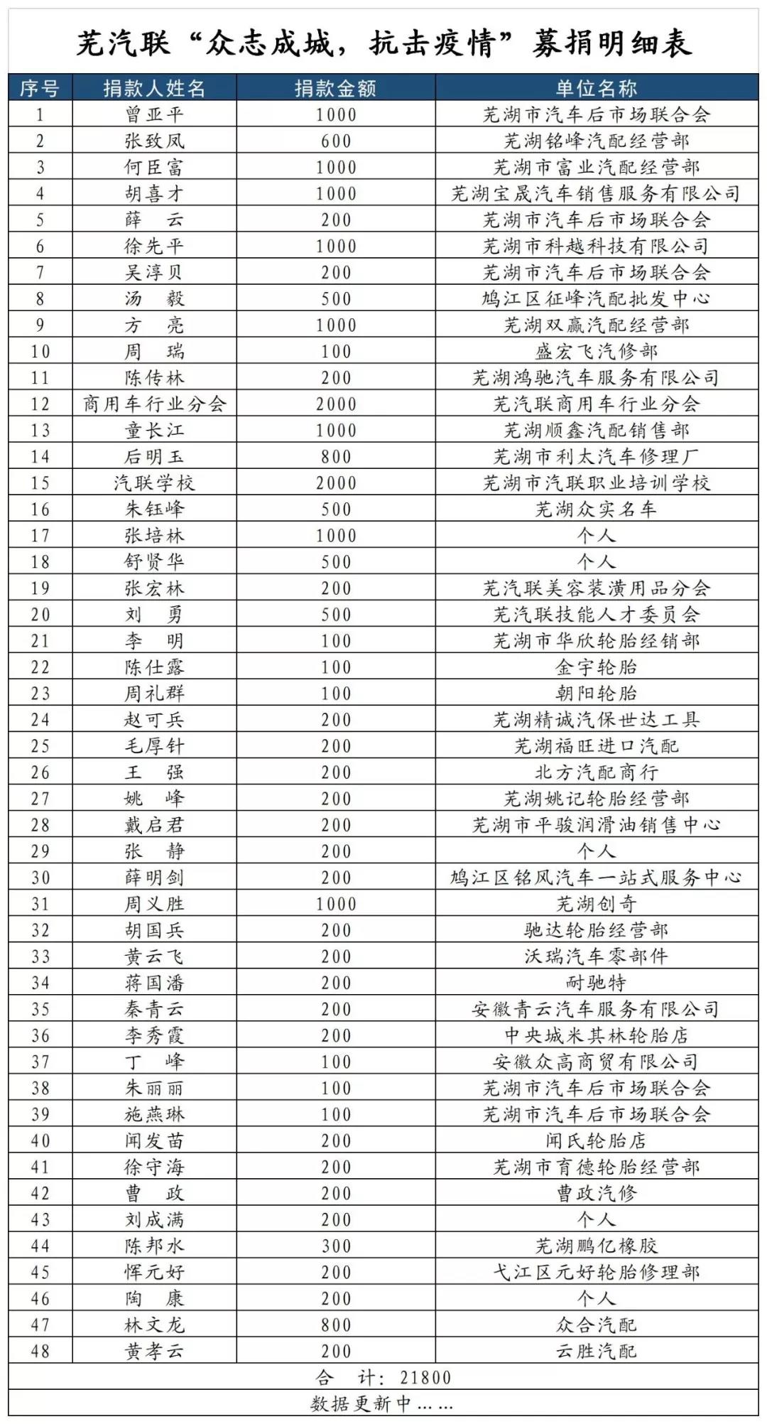 11、安徽蕪湖汽車后市場聯(lián)合會會長曾亞平 捐款1000元