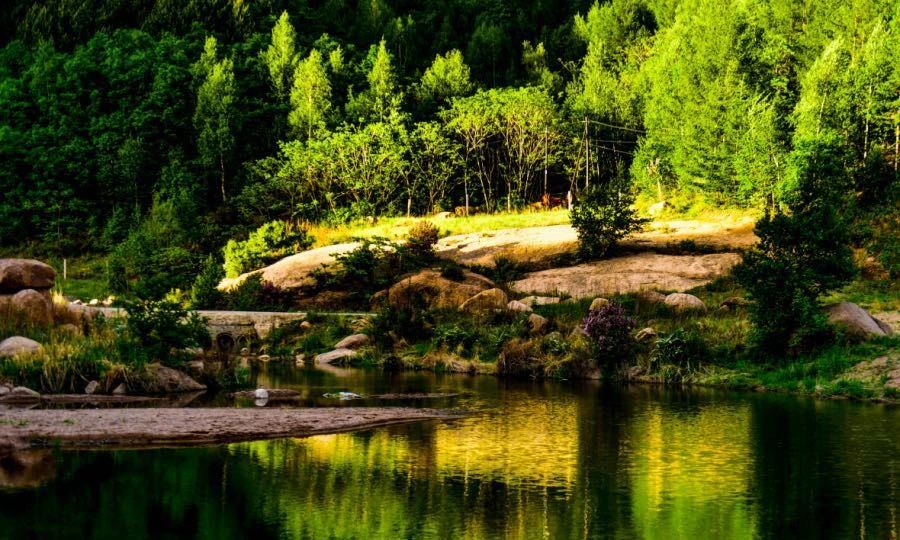 道須溝的河谷是一個(gè)絕美的去處。在那里不但有清澈的溪水,一道又一道的瀑布,而且有數(shù)不清的多姿多彩的巨大怪石,與蜿蜒曲折的溪水相依相伴,相得益彰。時(shí)而,溪水從巨石邊回環(huán)流過(guò),為石邊留下一片沙灘,時(shí)而,溪流從巨石的縫隙下流出,發(fā)出巨大的轟鳴聲,水與石是那樣的和諧,那樣的默契。河谷邊的各種樹(shù)木,也是一道美麗的風(fēng)景。柳絲依依,楸影婆娑,楊樺橫斜,多姿多彩,在這里,儼然一副上好的水墨丹青。