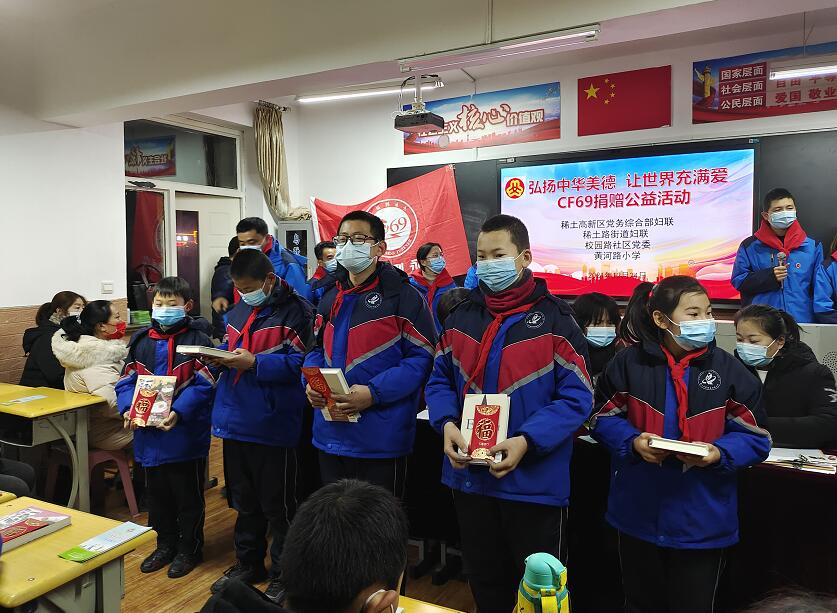 包頭稀土高新區(qū)婦聯(lián)主席趙宇軍,稀土路街道校園路社區(qū)婦聯(lián)主席劉麗霞,黃河路小學(xué)趙校長、樊主任,中汽聯(lián)秘書長郭霽嘉,包頭市汽配協(xié)會(huì)辦公室主任張晶,包頭市瑞盛國際汽配城運(yùn)營經(jīng)理傅榮,CF69全體成員及校園路社區(qū)、武村、富林路社區(qū)、沼一社區(qū)、幸福南路社區(qū)、曹村、恒為路社區(qū)、友誼社區(qū)的特困兒童代表等參加捐贈(zèng)儀式。