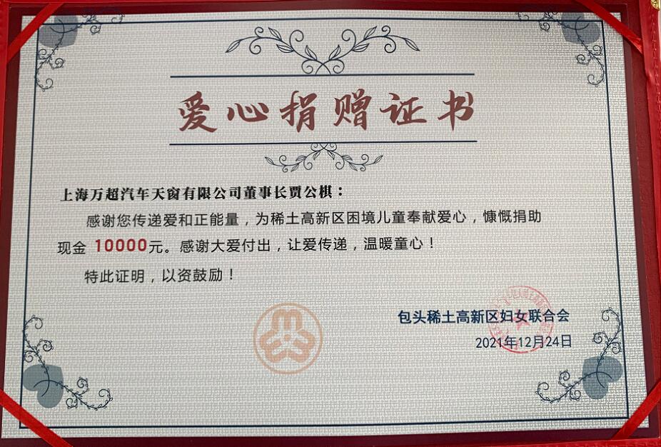 中汽聯(lián)主席、上海萬超汽車天窗有限公司董事長賈公棋未能親赴現(xiàn)場,他錄制了一段視頻,表達(dá)了中汽聯(lián)家人對(duì)特困兒童的關(guān)心。賈主席表示捐贈(zèng)10000元對(duì)于我們來說算不了什么,但是對(duì)于一個(gè)特困家庭的孩子就是一筆巨款;他希望自己的這一點(diǎn)綿薄之力能解決高箏同學(xué)生活上的實(shí)際問題,并祝愿她能快樂成長,祖國的花朵需要大家一起協(xié)起手來共同維護(hù);企業(yè)家應(yīng)該有社會(huì)擔(dān)當(dāng)和責(zé)任,還是那句老話:善不分大小,小善彰顯大愛,有心就好。