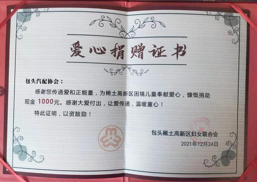 中汽聯(lián)家人為包頭特困兒童捐款近4萬元