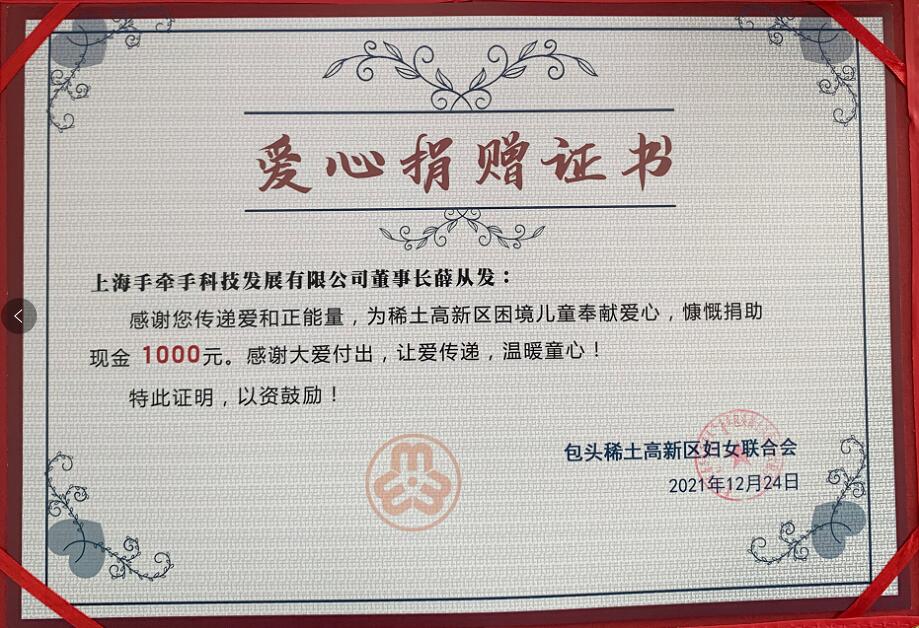 以下為捐款證書