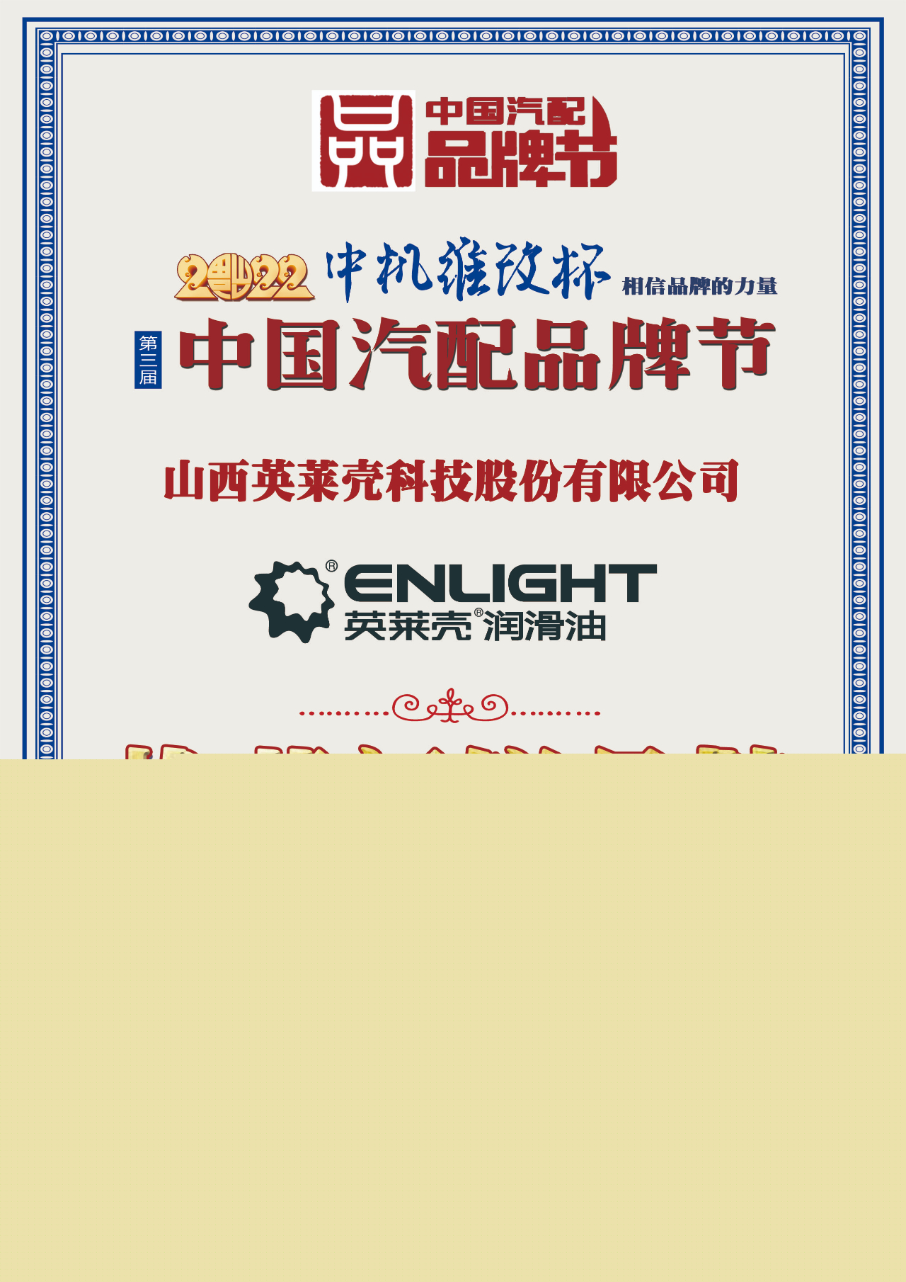 山西英萊殼榮膺2022中國汽配行業(yè)兩項品牌大獎!