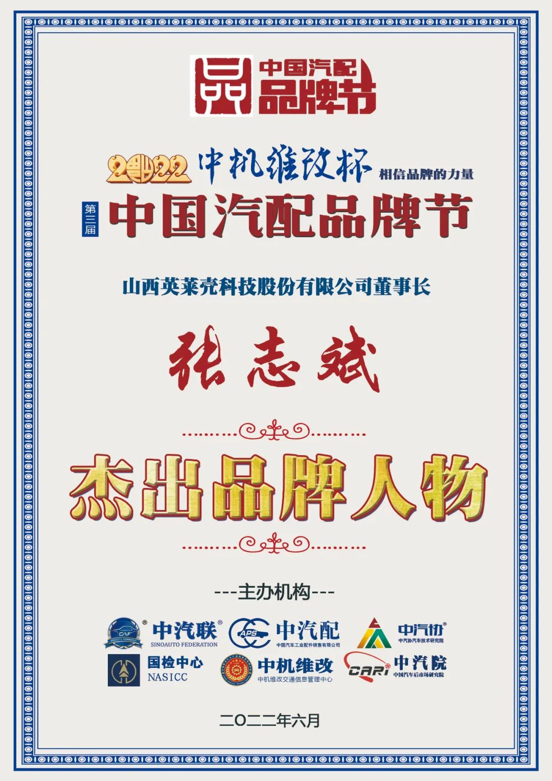 據(jù)《2022中國汽配品牌榜》榜單顯示:山西英萊殼董事長張志斌榮膺“2022中國汽配行業(yè)杰出品牌人物”、英萊殼榮膺“2022中國汽配行業(yè)推薦新銳品牌”兩項大獎。