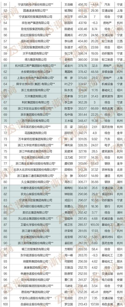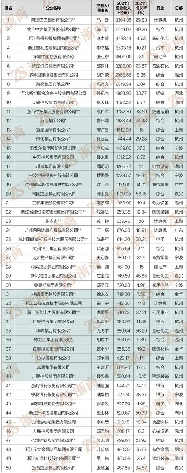“2022浙商全國500強“全榜單