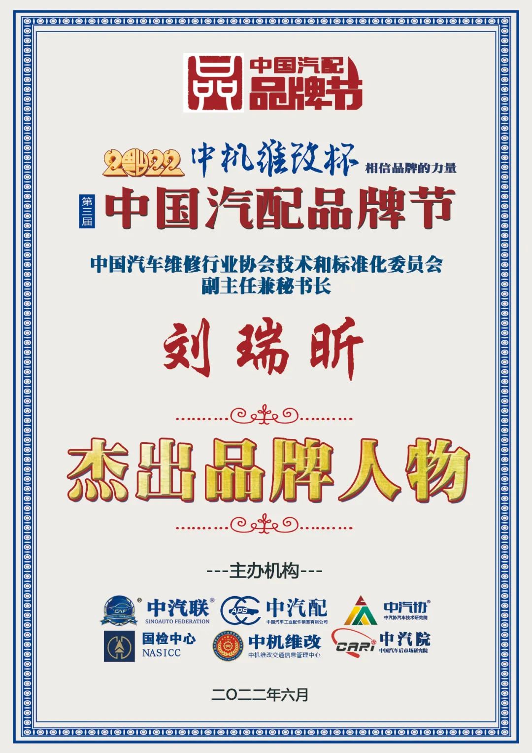 據(jù)《2022中國汽配品牌榜》榜單顯示:中國汽車維修行業(yè)協(xié)會技術和標準化委員會副主任兼秘書長劉瑞昕榮膺“2022中國汽配行業(yè)杰出品牌人物”大獎。