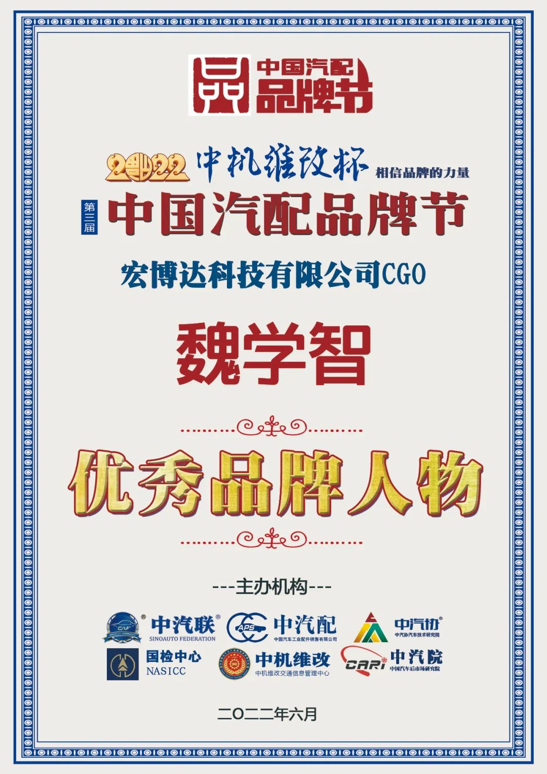 據(jù)《2022中國汽配品牌榜》榜單顯示:魏學(xué)智榮膺“2022中國汽配行業(yè)優(yōu)秀品牌人物”大獎(jiǎng)。