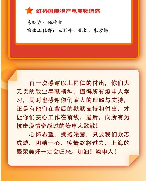 下面,讓我們走進7位抗疫一線燎申人,他們用心、用情、用智,在封控兩個多月的園區(qū)里,書寫了燎申在特殊時期的暖心守“滬”。
