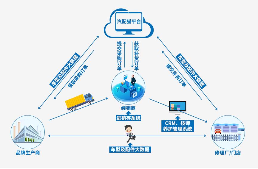 汽配貓B2b汽配電商交易服務(wù)平臺,在線上實(shí)現(xiàn)了信息流、交易流和資金流三流合一,同時(shí)搭建屬于服務(wù)商定制化、屬地化的B2b汽配電商交易服務(wù)平臺,讓城市服務(wù)商可實(shí)現(xiàn)拎包入住,線上系統(tǒng)還有“智能機(jī)器人查詢系統(tǒng)”,“技師掃碼積分、電子質(zhì)保單和學(xué)習(xí)系統(tǒng)”,“配件商ERP系統(tǒng)“,維修門店SAAS管理系統(tǒng)”,“配件商鋪貨云倉管理系統(tǒng)”,“配件商專屬交易平臺系統(tǒng)”等。