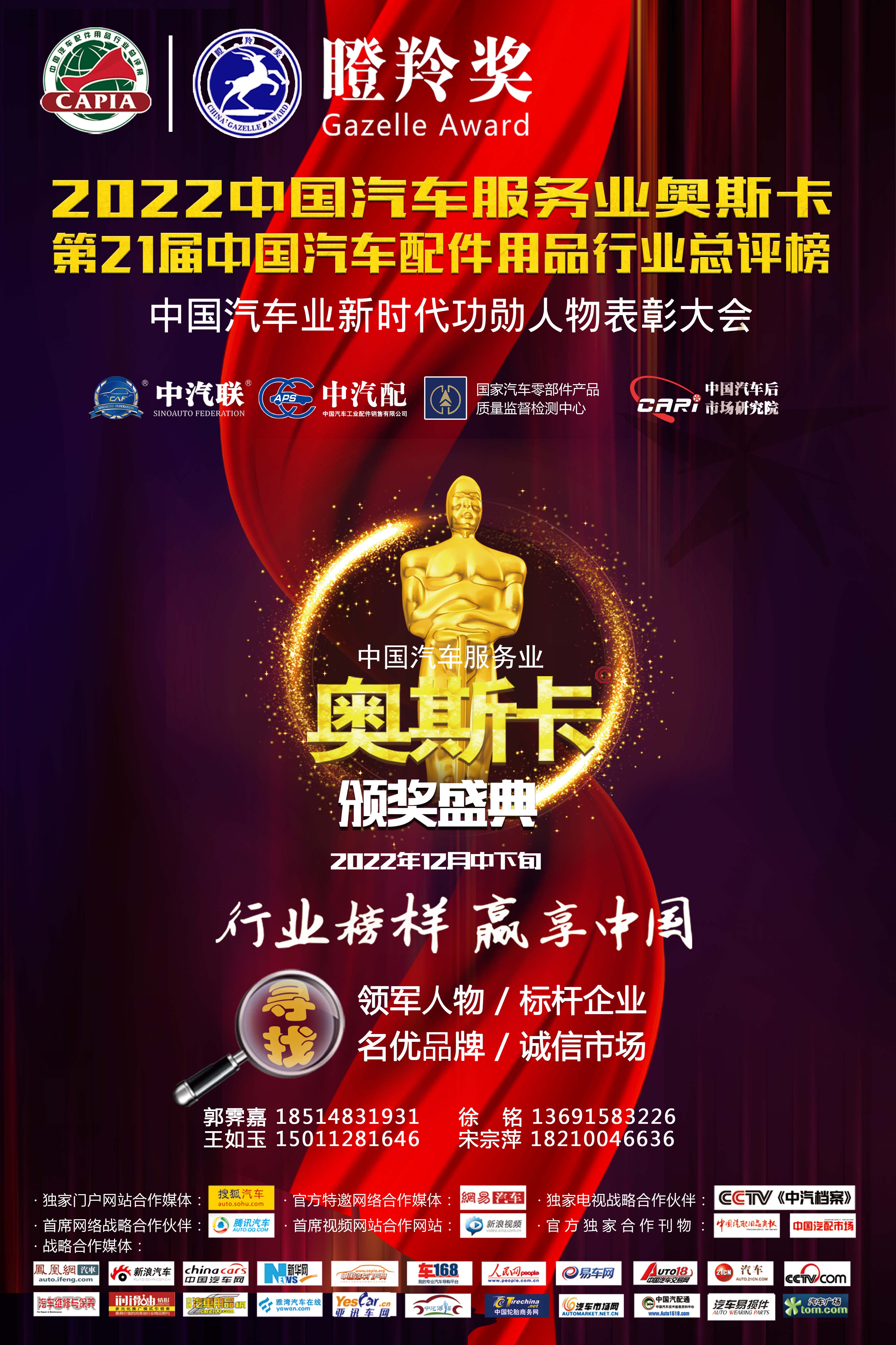 2022年是黨的二十大召開之年,是中國“十四五”規(guī)劃實施的關(guān)鍵之年,也是我國汽車行業(yè)高質(zhì)量發(fā)展的決戰(zhàn)之年,意義重大、責(zé)任重大。面對百年未有之大變局,全球產(chǎn)業(yè)鏈供應(yīng)鏈面臨重塑,不穩(wěn)定性不確定性急劇增加,為應(yīng)對挑戰(zhàn)和搶抓機遇,國家汽車零部件產(chǎn)品質(zhì)量監(jiān)督檢驗中心、中國汽車改裝用品協(xié)會汽車服務(wù)業(yè)委員會、中國汽車后市場研究院、機械工業(yè)汽車零部件產(chǎn)品質(zhì)量監(jiān)督檢測中心、中汽環(huán)球汽配用品檢測認證中心、中汽協(xié)汽車技術(shù)研究院等機構(gòu)為貫徹落實“國務(wù)院辦公廳關(guān)于完善科技成果評價機制的指導(dǎo)意見(國辦發(fā)〔2021〕26號)”有關(guān)精神,按照《汽車配件用品知名品牌評定方法》(CAB 1026-2014)行業(yè)標準的要求,決定以“以初心致敬汽車行業(yè)·以匠心守護汽車安全”為主題,共同舉辦第21屆中國汽車配件用品行業(yè)總評榜暨2022中國汽車服務(wù)業(yè)奧斯卡(簡稱:瞪羚獎)等系列活動,記錄中國汽車工業(yè)的匠心故事、匠心人物、匠心品牌、匠心企業(yè),勾勒汽車工業(yè)行業(yè)前進足跡,為推動中國汽車產(chǎn)業(yè)高質(zhì)量發(fā)展貢獻力量。