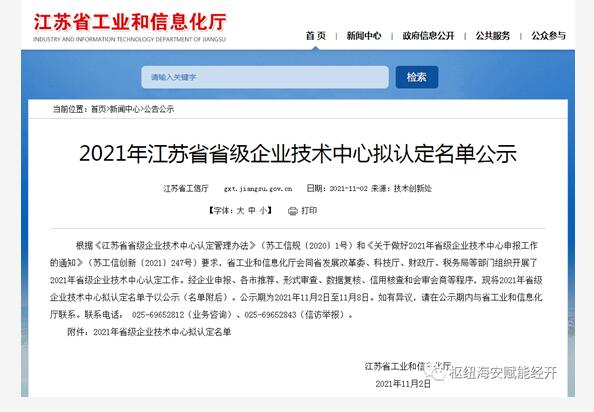 近日,江蘇省工信廳對 2021年省級企業(yè)技術中心進行公示,駱氏技術中心光榮上榜。