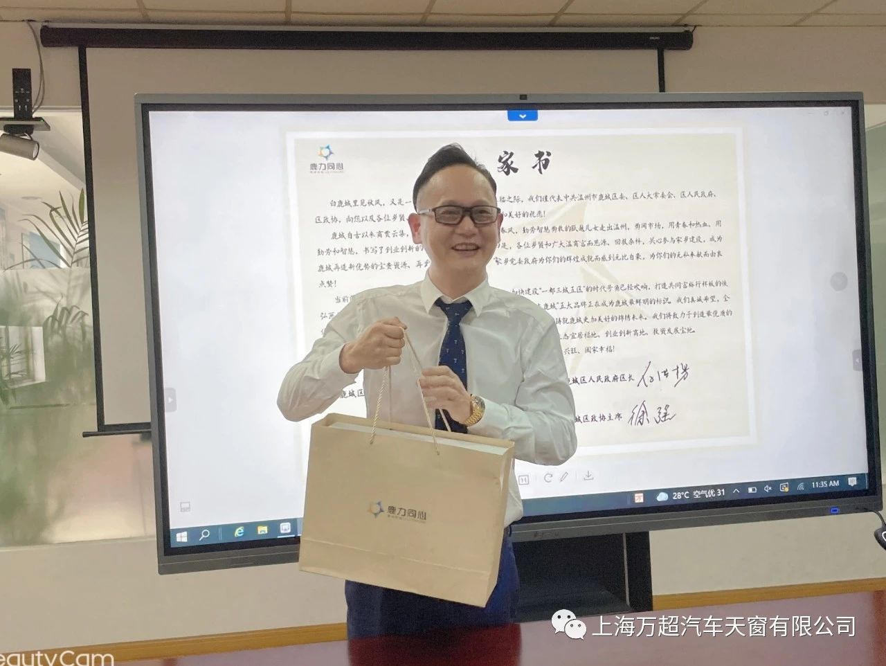 座談會上,上海萬超汽車天窗有限公司董事長賈公棋表示:此次溫州市鹿城區(qū)委統(tǒng)戰(zhàn)部陳軍蘋部長一行等領(lǐng)導(dǎo)蒞臨我司參觀,深感欣慰,這是上海萬超自2004年成立以來鹿城區(qū)領(lǐng)導(dǎo)首次來訪,內(nèi)心非常感動。