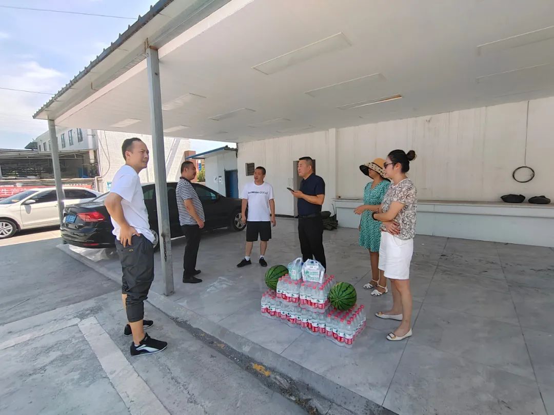烈日炎炎,驕陽(yáng)似火,40幾度的連續(xù)高溫讓敘永進(jìn)入了燒烤模式。今日正值處暑,川滇黔物流港黨支部書(shū)記牟新平、項(xiàng)目總經(jīng)理陳燕秋、工會(huì)副主席蔡蓮一行帶著礦泉水、消暑藥品、西瓜等消暑物資為高溫作業(yè)的園區(qū)企業(yè)送去一絲清涼,詢問(wèn)了各企業(yè)高溫天氣下的安全作業(yè)情況,并溫馨提醒高溫酷暑堅(jiān)守在一線的員工注意降溫防暑。