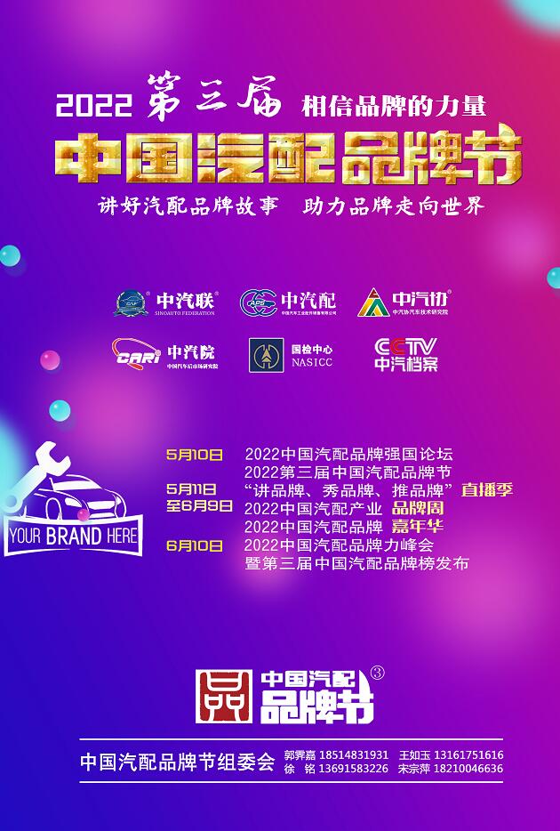 據(jù)中汽聯(lián)執(zhí)行會(huì)長、中汽協(xié)汽車技術(shù)研究院院長喬永鋒介紹,黨中央、國務(wù)院高度重視品牌發(fā)展,特別將每年的5月10日設(shè)立為“中國品牌日”,把中國品牌發(fā)展提升到戰(zhàn)略高度。為更好地把國家品牌發(fā)展戰(zhàn)略落到實(shí)處,中汽聯(lián)5月將繼續(xù)舉辦“2022第三屆中國汽配品牌節(jié)”活動(dòng)。具體安排為:5月10日舉辦“2022中國汽配品牌強(qiáng)國論壇”;5月11-6月9日將開啟“講品牌、秀品牌、推品牌”直播季、中國汽配產(chǎn)業(yè)品牌周、中國汽配品牌嘉年華等系列活動(dòng);6月10日將舉辦“2022中國汽配品牌力峰會(huì)暨第三屆中國汽配品牌榜發(fā)布”。誠摯面向中汽聯(lián)家人、行業(yè)同仁、企業(yè)和個(gè)人征集系列活動(dòng)方案、承辦及合作意向、峰會(huì)或論壇發(fā)言嘉賓推薦、品牌榜單企業(yè)推薦、專題研究報(bào)告等,共襄盛舉。