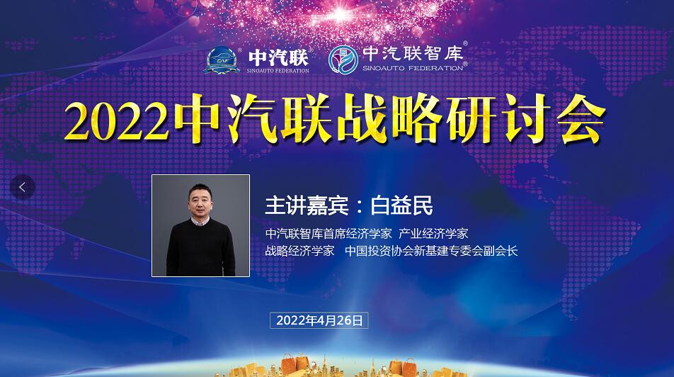 2022年4月26日,由中國汽車工業(yè)配件銷售有限公司、第91屆全國汽車配件交易會(huì)支持,中汽聯(lián)、中汽聯(lián)智庫主辦,中汽協(xié)研究院、三井商道協(xié)辦的“2022中汽聯(lián)戰(zhàn)略研討會(huì)”在線上成功舉辦,中汽聯(lián)智庫首席經(jīng)濟(jì)專家白益民老師給大家做了專題分享,并現(xiàn)場回答了八位家人的問題,202名中汽聯(lián)家人及企業(yè)家朋友們參會(huì),戰(zhàn)研會(huì)由中汽聯(lián)執(zhí)行會(huì)長喬永鋒主持。