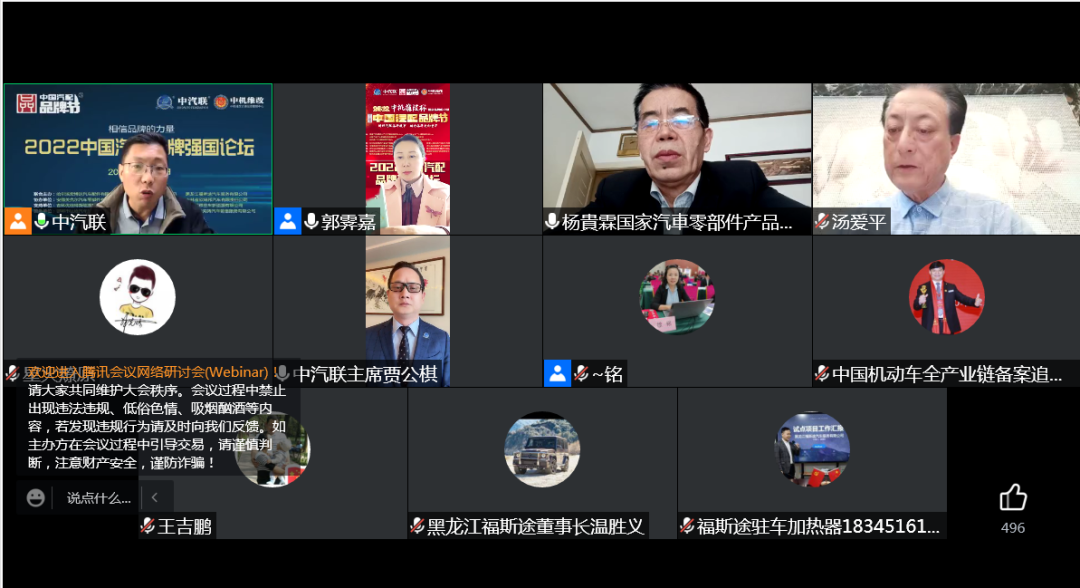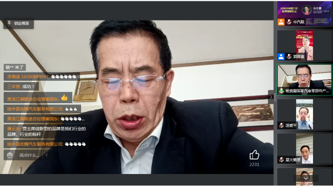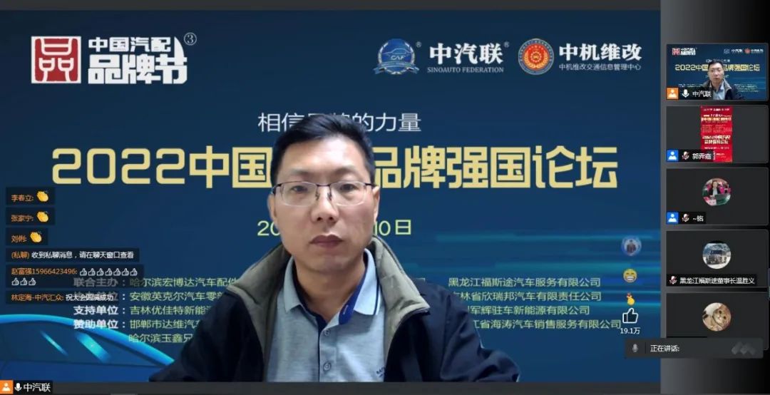 2022中國(guó)汽配品牌強(qiáng)國(guó)論壇由中汽聯(lián)、中機(jī)維改、中汽配等機(jī)構(gòu)共同主辦;由哈爾濱宏博達(dá)汽車配件有限公司、上海萬(wàn)超汽車天窗有限公司、黑龍江福斯途汽車服務(wù)有限公司聯(lián)合主辦;由中國(guó)(陽(yáng)谷)車品小鎮(zhèn)、華勝集團(tuán)、上海燎申集團(tuán)、吉林欣瑞邦汽車有限責(zé)任公司、安徽英克爾汽車零部件有限公司、北京長(zhǎng)宏企鵝助劑有限公司友情協(xié)辦;由吉林優(yōu)佳特新能源科技有限公司、上海京滬投資管理有限公司、青州軍輝駐車新能源有限公司、山東科佳智能裝備城、鄭州尊生汽車零部件制造有限公司、滄州環(huán)銳精密鑄造有限公司、遼寧浩億達(dá)科技有限公司、河南頤爾福新能源科技有限公司特別支持;由邯鄲市達(dá)維汽車維修有限公司、沈陽(yáng)樂達(dá)汽車服務(wù)有限公司、黑龍江省海濤汽車銷售服務(wù)有限公司、哈爾濱玉鑫兄弟科技有限公司、滄州守諾金屬制品有限公司友情贊助;由德州市鑫雙恒汽車服務(wù)有限公司、??h李春亮汽車維修門市部 、滄州春立汽車服務(wù)有限公司、臨沂富裕汽車服務(wù)有限公司、綏中縣宏騰汽車服務(wù)有限公司、榆樹市鑫運(yùn)程汽車服務(wù)限公司、綏中縣鑫發(fā)汽車服務(wù)有限公司、臨清市浩航汽車服務(wù)有限公司特別祝賀;近千名企業(yè)家全程在線收看了國(guó)強(qiáng)論壇,點(diǎn)贊數(shù)接近200000個(gè)。
