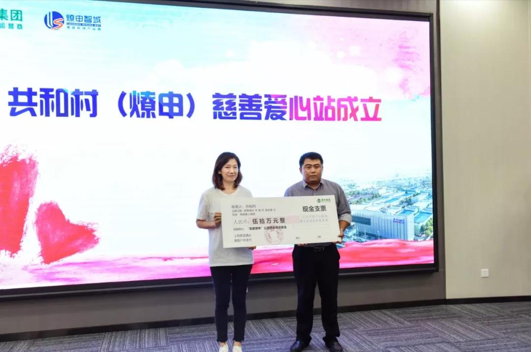 燎申集團現(xiàn)場捐款50萬元成立共和村(燎申)慈善愛心站
