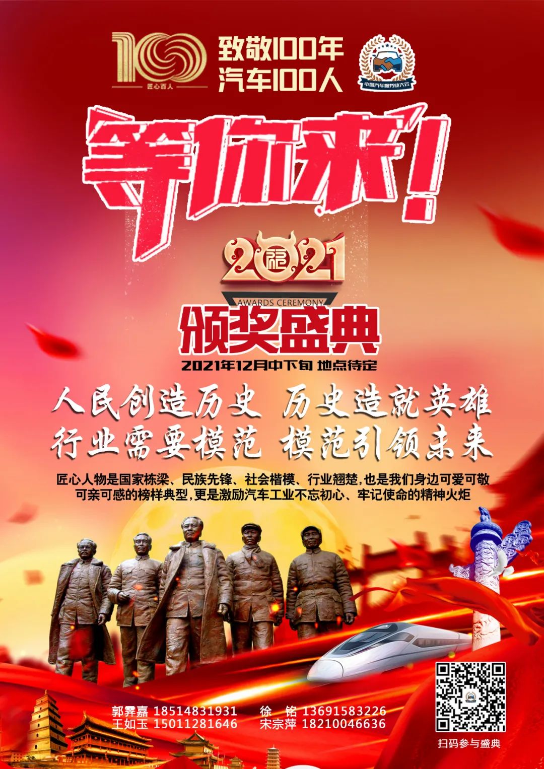 100年砥礪奮進(jìn),100年譜寫(xiě)輝煌。2021年是我們偉大的中國(guó)共產(chǎn)黨成立100周年,今年我們也實(shí)現(xiàn)了第一個(gè)百年目標(biāo),在中華大地上全面建成了小康社會(huì),在汽車行業(yè)中也涌現(xiàn)出了許多值得記錄的人物。站在新的歷史坐標(biāo),講述中國(guó)故事、勾勒前進(jìn)足跡,同享偉大榮光、同鑄復(fù)興偉業(yè),充分展示建黨100周年之際汽車行業(yè)取得的光輝歷程,展示汽車行業(yè)的偉大成就。中汽聯(lián)以“黨旗引領(lǐng) 匠心筑夢(mèng)”為主題,在汽車行業(yè)開(kāi)展“尋找100名匠心人物”活動(dòng),就是要向這些匠心人物致敬,向他們堅(jiān)守的匠心精神致敬,向匠心精神的不斷傳承致敬。
