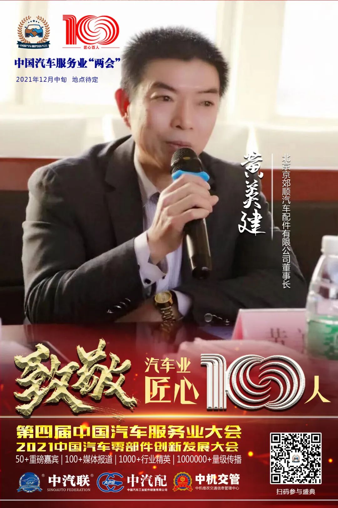 據(jù)第四屆中國(guó)汽車服務(wù)業(yè)大會(huì)組委會(huì)介紹,中汽聯(lián)常務(wù)副主席、北京京郊順汽車配件有限公司董事長(zhǎng)黃美建入選“百年百人”中國(guó)汽車業(yè)匠心100人。