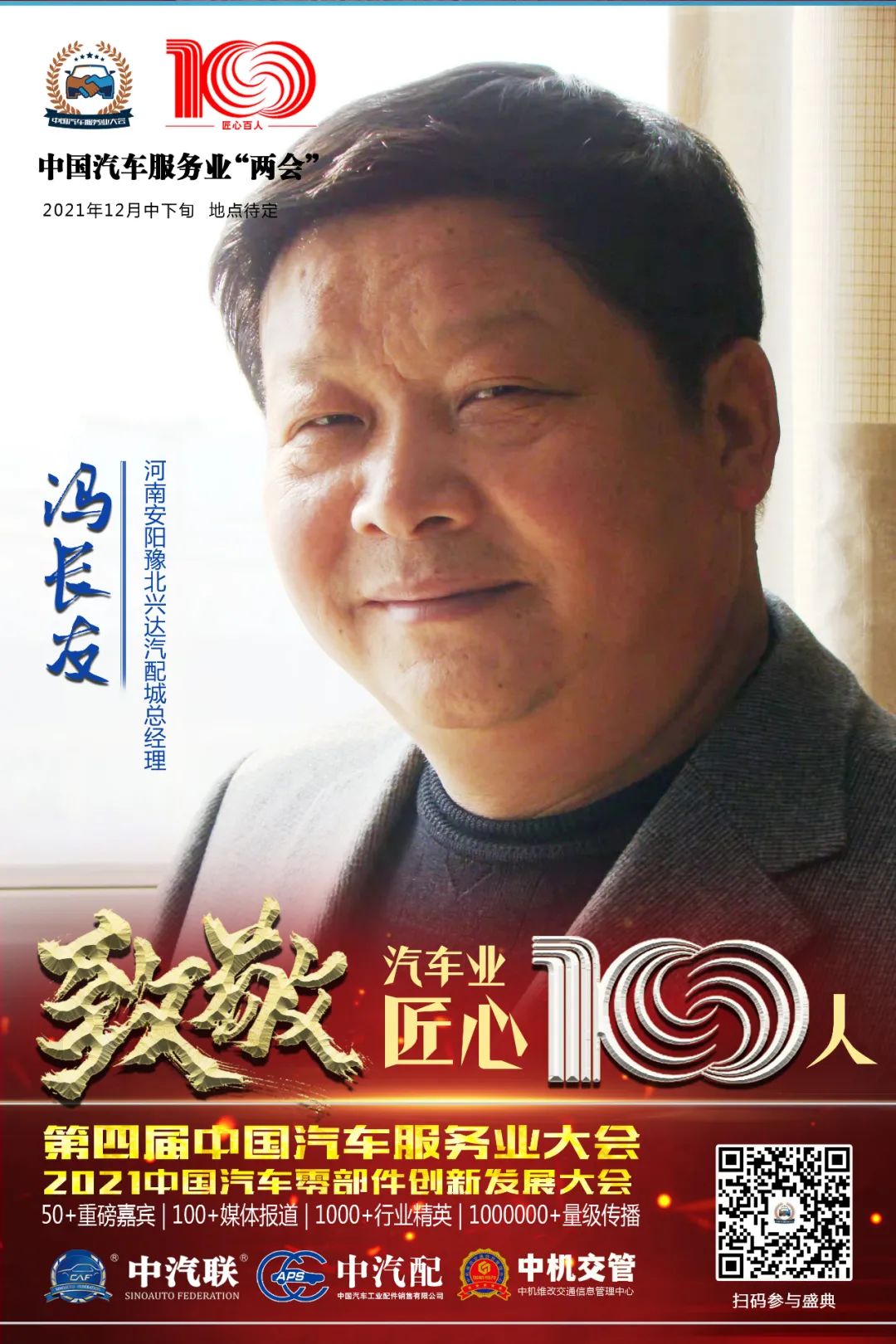據(jù)第四屆中國汽車服務業(yè)大會組委會介紹,中汽聯(lián)副主席、河南安陽豫北興達汽配城總經理馮長友入選“百年百人”中國汽車業(yè)匠心100人。