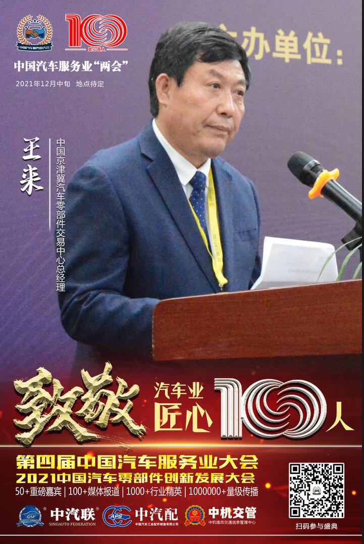 據(jù)第四屆中國(guó)汽車(chē)服務(wù)業(yè)大會(huì)組委會(huì)介紹,中汽聯(lián)副主席、京津冀汽車(chē)零部件交易中心總經(jīng)理王來(lái)入選“百年百人”中國(guó)汽車(chē)業(yè)匠心100人。