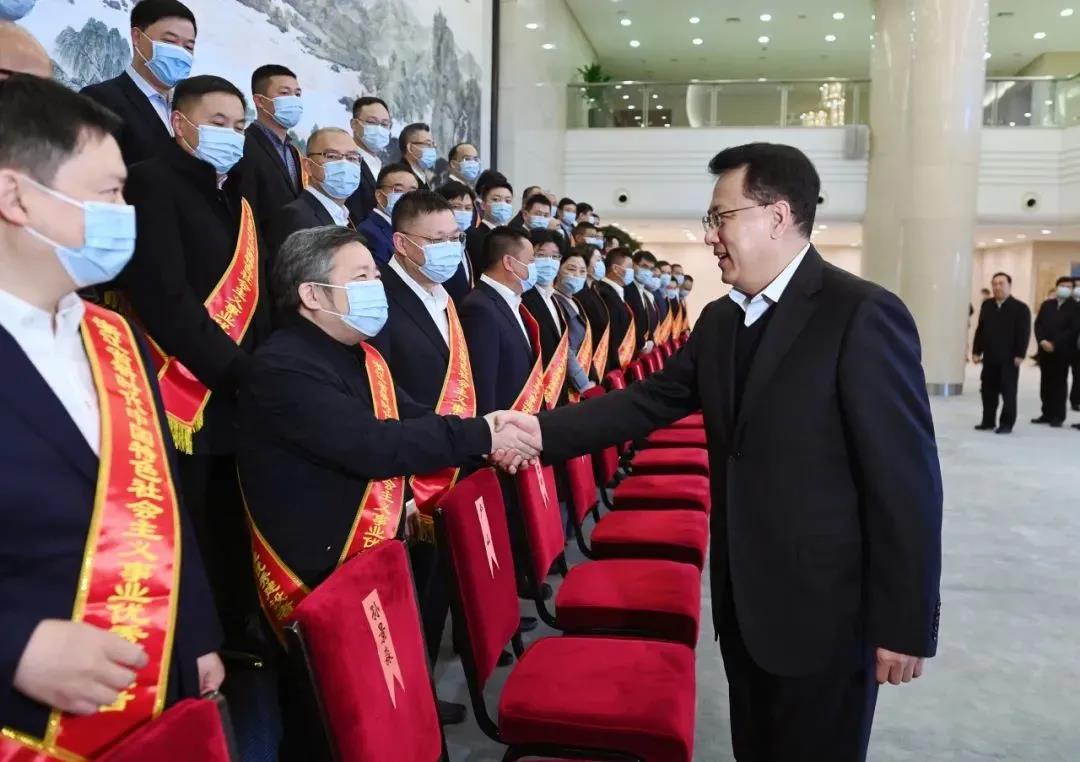 會前,省領(lǐng)導看望了2021浙江新時代中國特色社會主義事業(yè)優(yōu)秀建設(shè)者,并與張曉平董事長親切握手。