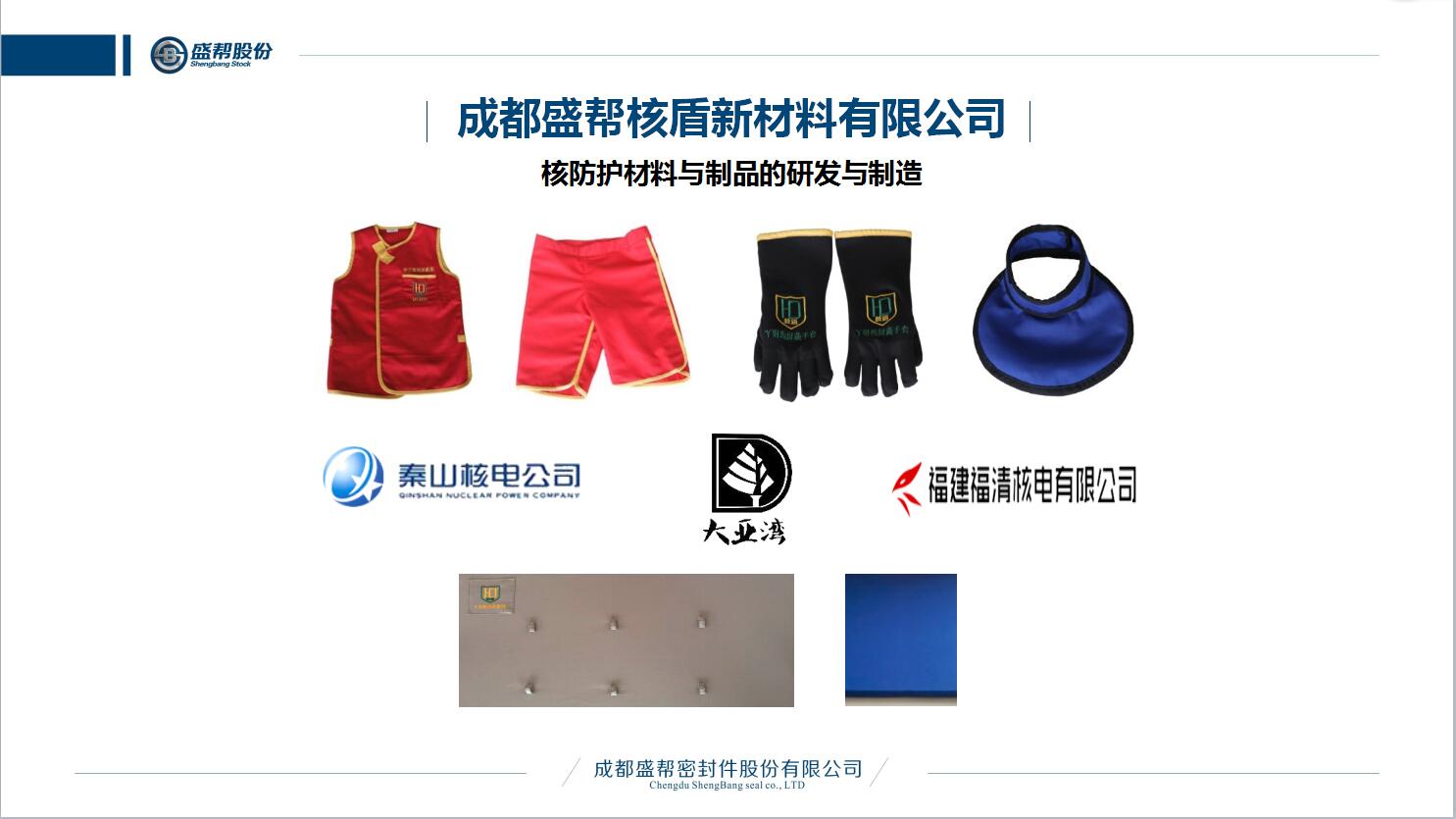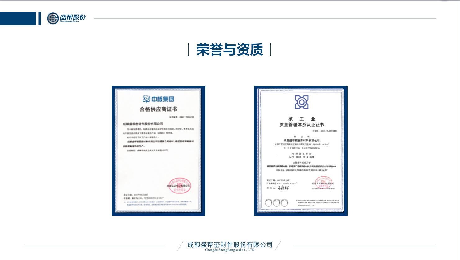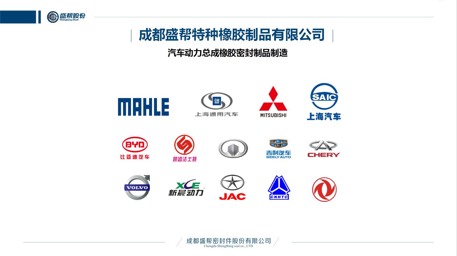 成都盛幫密封件股份有限公司,于2004年6月設(shè)立于成都市雙流區(qū)成雙大道南段1077號(hào),是國(guó)內(nèi)專業(yè)從事高分子(復(fù)合)材料的研發(fā)與運(yùn)用的國(guó)家級(jí)高新技術(shù)企業(yè)、新三板掛牌企業(yè)(股票代碼831247),主要生產(chǎn)汽車動(dòng)力總成系統(tǒng)關(guān)鍵密封件、智能電網(wǎng)橡膠絕緣制品、特種裝備復(fù)合材料、核防護(hù)服及屏蔽材料等特種橡膠制品,產(chǎn)品覆蓋領(lǐng)域廣,技術(shù)水平國(guó)內(nèi)領(lǐng)先。