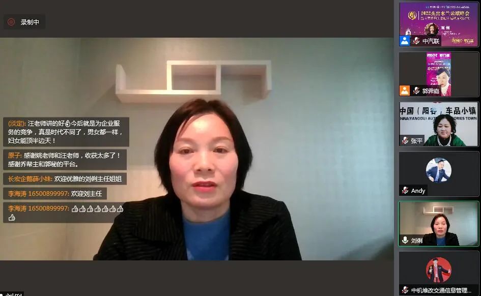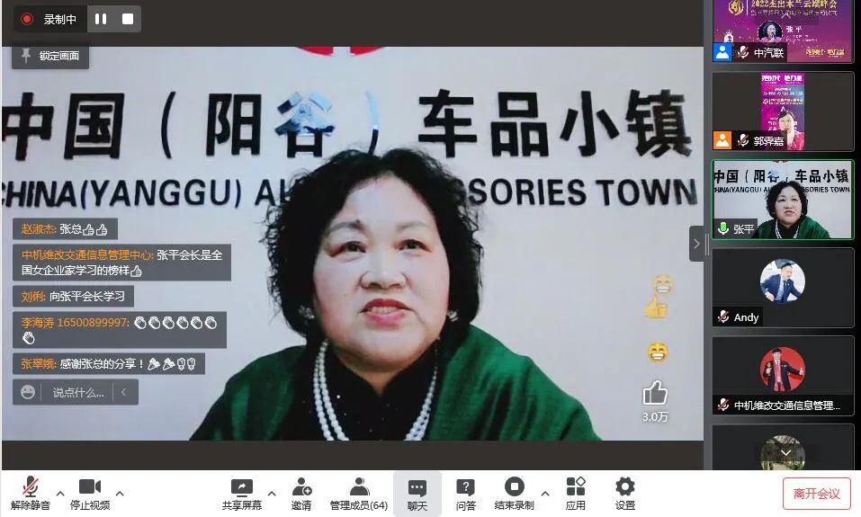 中汽聯(lián)會長、木蘭會總顧問、中國汽車服務(wù)業(yè)委員會會長、中國汽車工業(yè)配件銷售有限公司董事長王篤洋,中汽聯(lián)主席、木蘭會專家團團長、上海萬超汽車天窗有限公司董事長賈公棋兩位行業(yè)領(lǐng)導(dǎo)為峰會致辭。木蘭會常委會會長、中國汽車零部件工業(yè)公司原總裁田亞梅,木蘭會智囊團團長、姚遠視界創(chuàng)始人姚遠,木蘭會導(dǎo)師、北京大學(xué)管理學(xué)博士、新價值私董會創(chuàng)始人汪曉霞,木蘭會秘書長、中國汽車工業(yè)配件銷售有限公司行業(yè)辦主任劉俐,木蘭會聯(lián)席主席、陽谷女企業(yè)家協(xié)會會長張平,木蘭會聯(lián)席主席、廣州傳奇汽車配件有限公司董事長胡繼艷,木蘭會聯(lián)席主席、北京長宏企鵝助劑有限公司董事長薛小妹等行業(yè)杰出木蘭代表參與峰會并分享了自己的見解。中汽聯(lián)理事長、臺州英克爾汽車零部件有限公司董事長湯愛平,中汽聯(lián)執(zhí)行會長、中汽協(xié)汽車技術(shù)研究院院長喬永鋒,中汽聯(lián)副主席、中機維改交通信息管理中心主任趙幸芝等中汽聯(lián)領(lǐng)導(dǎo)及木蘭會姐妹在網(wǎng)上觀看,大會受到了搜狐汽車、今日頭條、《中國汽配市場》、《中國汽配用品商報》等多家主流媒體的關(guān)注。