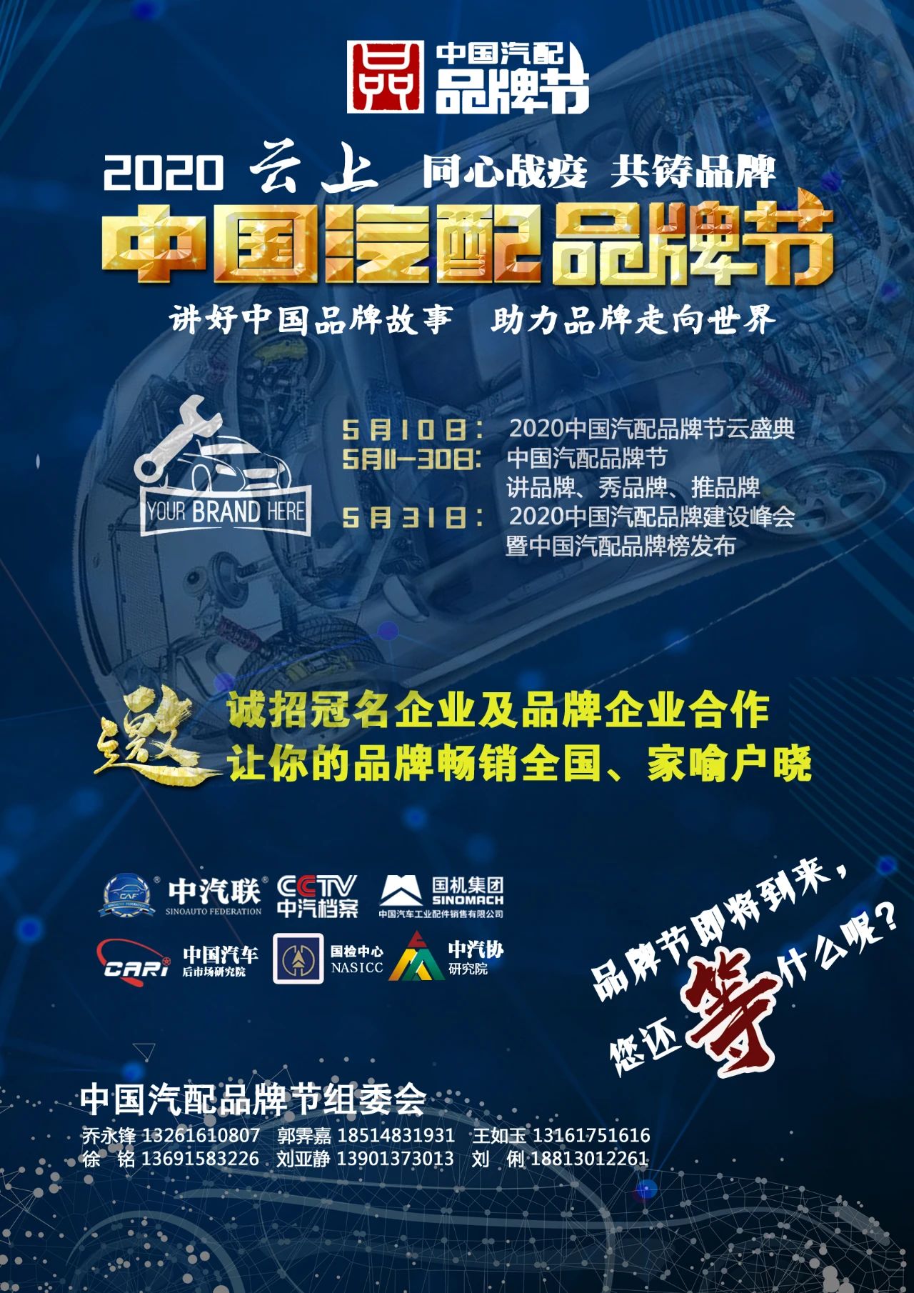 為響應(yīng)國(guó)家品牌強(qiáng)國(guó)戰(zhàn)略,宣傳推介汽配行業(yè)名優(yōu)品牌,由中聯(lián)倡議發(fā)起,由國(guó)家汽車零部件產(chǎn)品質(zhì)量監(jiān)督檢驗(yàn)中心、中國(guó)汽車工業(yè)配件銷售有限公司、中國(guó)汽車工業(yè)協(xié)會(huì)后市場(chǎng)用品分會(huì)主辦,由中國(guó)汽車后市場(chǎng)研究院、中汽協(xié)汽車技術(shù)研究院承辦,共同啟動(dòng)“同心戰(zhàn)疫 共鑄品牌”——2020中國(guó)品牌日暨中國(guó)汽配品牌建設(shè)系列活動(dòng),此次活動(dòng)將延續(xù)到5月底,展示汽車服務(wù)業(yè)品牌企業(yè)在抗疫及復(fù)工復(fù)產(chǎn)中的榜樣擔(dān)當(dāng),為品牌強(qiáng)國(guó)建設(shè)貢獻(xiàn)行業(yè)力量。