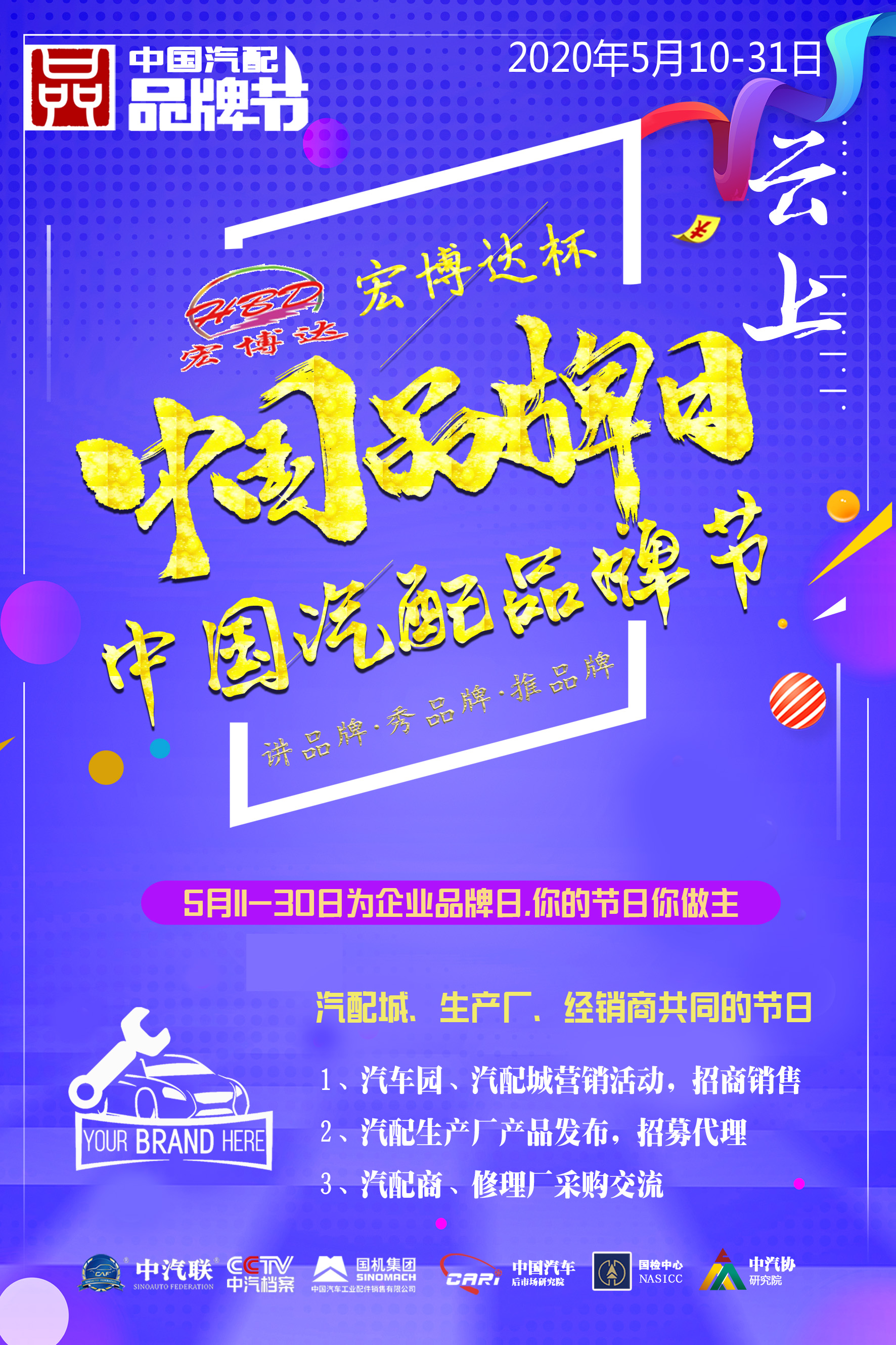2020年5月10日,為響應(yīng)國(guó)家品牌強(qiáng)國(guó)戰(zhàn)略,宣傳推介汽配行業(yè)名優(yōu)品牌,由中汽聯(lián)倡議發(fā)起,哈爾濱宏博達(dá)汽車配件有限公司冠名支持,由國(guó)家汽車零部件產(chǎn)品質(zhì)量監(jiān)督檢驗(yàn)中心、中國(guó)汽車工業(yè)配件銷售有限公司、中國(guó)汽車工業(yè)協(xié)會(huì)后市場(chǎng)用品分會(huì)主辦,由中國(guó)汽車后市場(chǎng)研究院、中汽協(xié)汽車技術(shù)研究院承辦,共同啟動(dòng)“同心戰(zhàn)疫 共鑄品牌”——2020“宏博達(dá)杯”中國(guó)汽配品牌節(jié),此活動(dòng)將延續(xù)到5月底,展示汽車服務(wù)業(yè)品牌企業(yè)在抗疫及復(fù)工復(fù)產(chǎn)中的榜樣擔(dān)當(dāng),為品牌強(qiáng)國(guó)建設(shè)貢獻(xiàn)行業(yè)力量。