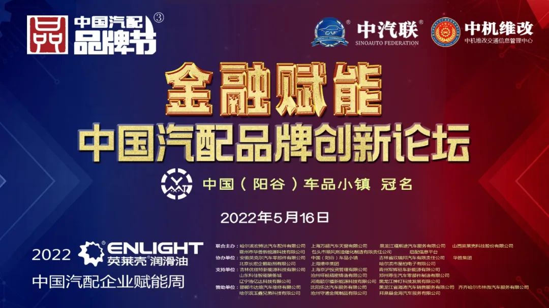 2022中國汽配品牌賦能周由山西英萊殼科技股份有限公司獨家冠名,在線上舉辦的賦能周第一場活動“金融賦能·2022中國汽配品牌創(chuàng)新論壇”由中國(陽谷)車品小鎮(zhèn)冠名特約播出,這是2022中機維改杯第三屆中國汽配品牌節(jié)系列活動的第四項活動。