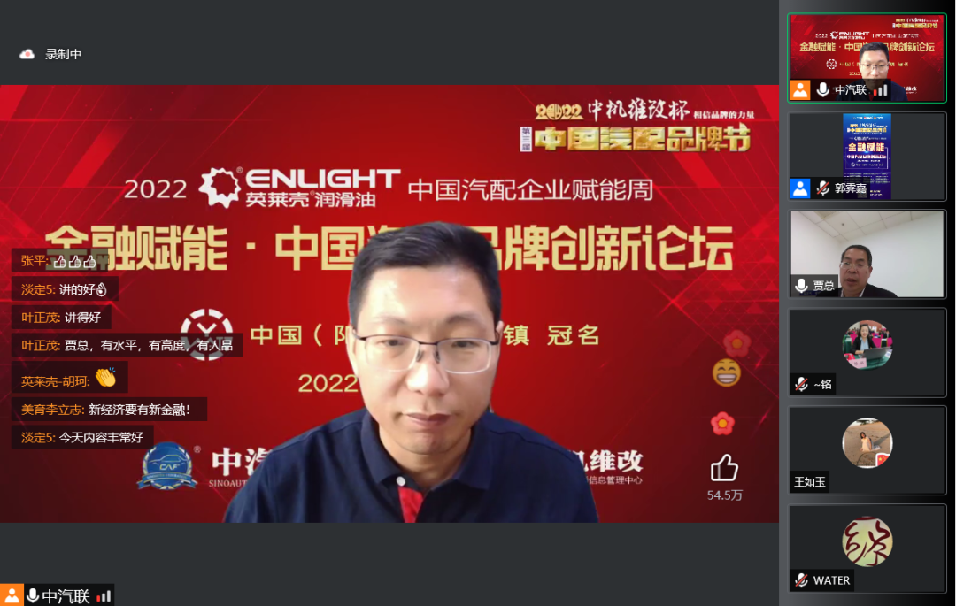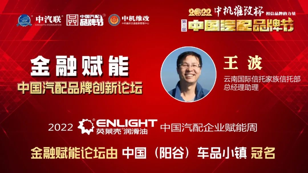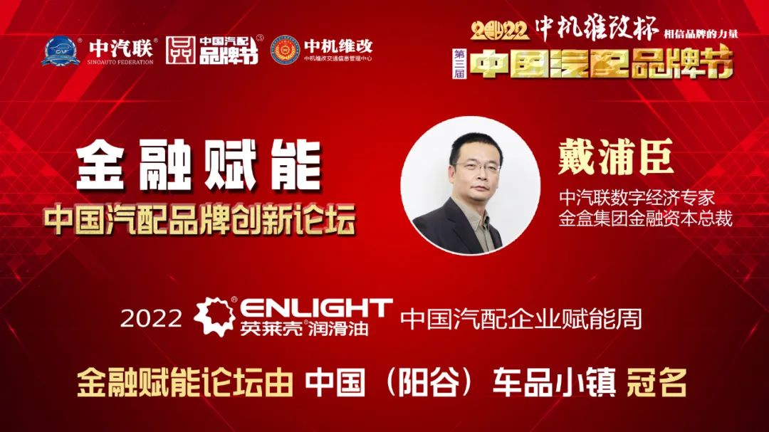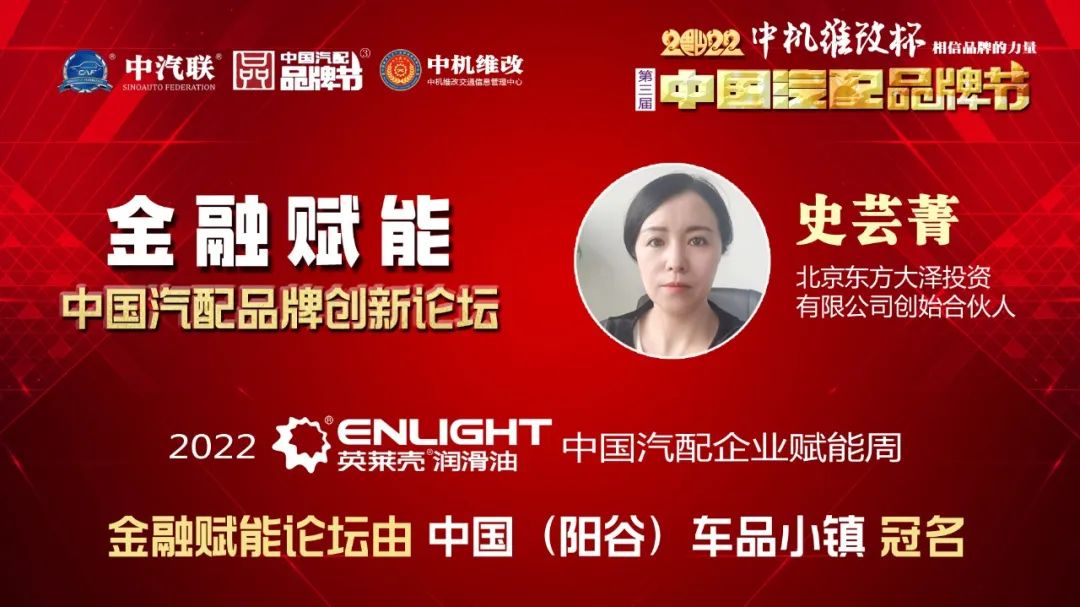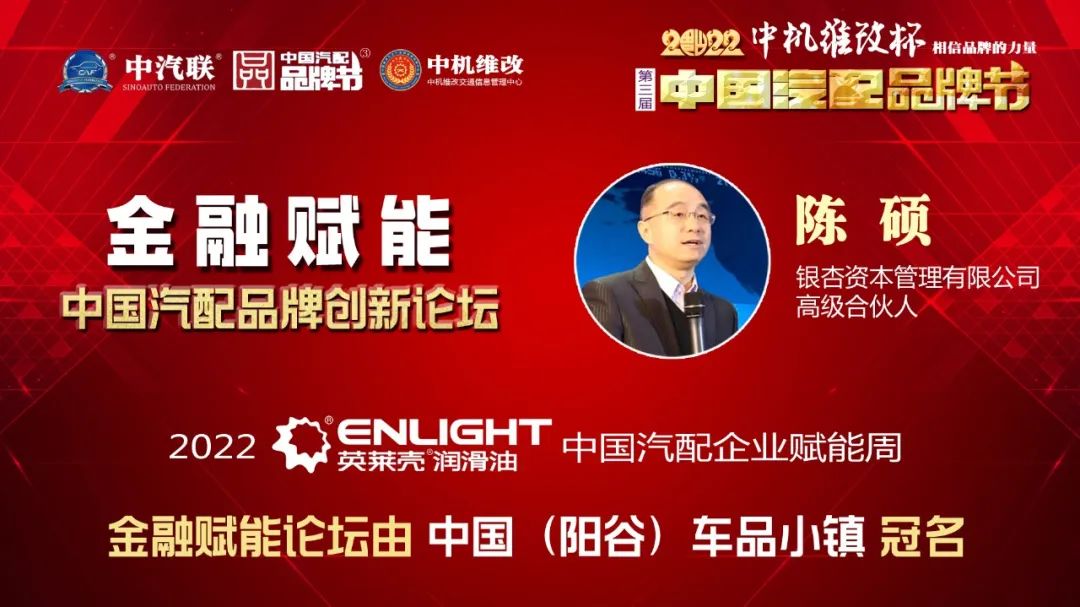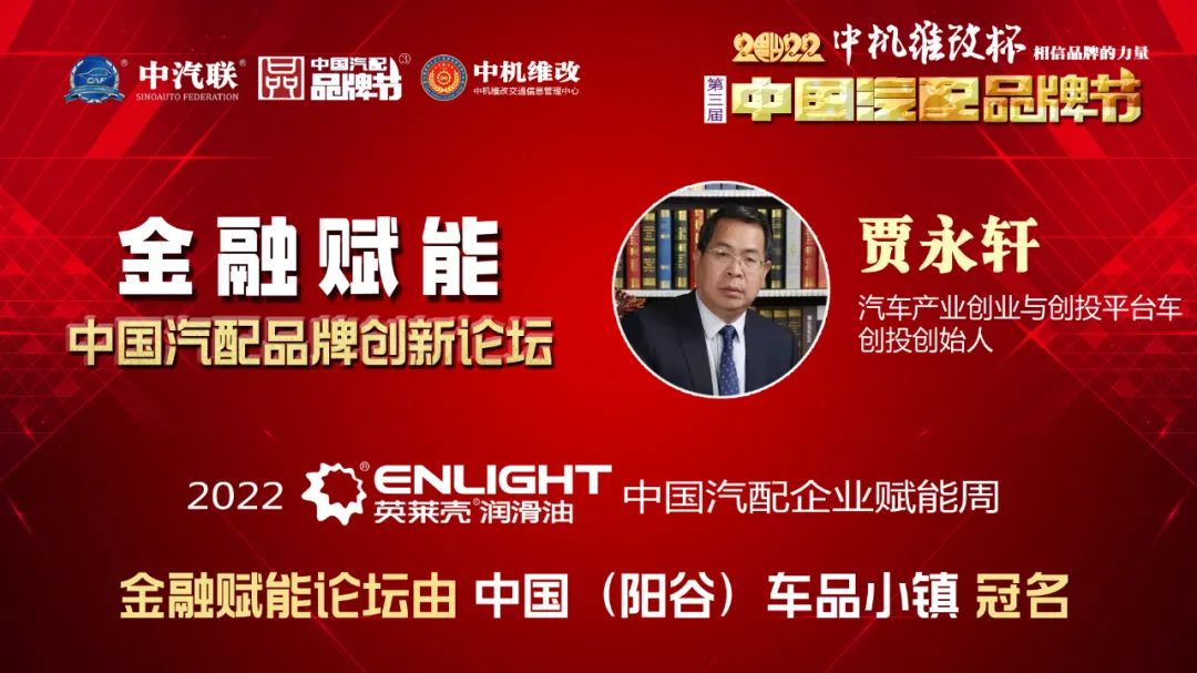 2022年5月16日,“2022 英萊殼杯 中國汽配品牌賦能周”的首場活動,由中國(陽谷)車品小鎮(zhèn)特約冠名的“金融賦能 · 2022中國汽配品牌創(chuàng)新論壇”在線上成功舉行,銀杏資本管理有限公司高級合伙人陳碩 、北京東方大澤投資有限公司創(chuàng)始合伙人史蕓菁、云南國際信托家族信托部總經(jīng)理助理王波、金盒集團金融資本總裁、中汽聯(lián)首席數(shù)字經(jīng)濟專家戴浦臣 、汽車產(chǎn)業(yè)創(chuàng)業(yè)與創(chuàng)投平臺——車創(chuàng)投創(chuàng)始人賈永軒等五位金融界大咖書長作為嘉賓做了精彩分享,得到了眾多汽配企業(yè)家的關注,點贊量達到了550000個。金融賦能論壇由中汽聯(lián)執(zhí)行會長、中汽協(xié)汽車技術研究院院長喬永鋒主持。