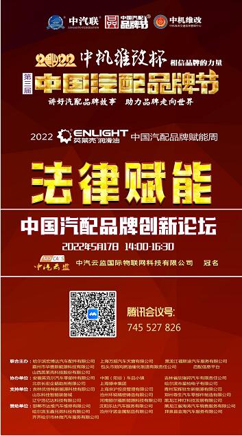 2022年5月17號下午2點(diǎn),相約“法律賦能 · 2022 中國汽配品牌創(chuàng)新論壇”,由中汽云監(jiān)國際物聯(lián)網(wǎng)科技有限公司特約冠名播出,聽聽法律界的大咖們對企業(yè)家的建議,周二下午2點(diǎn),騰訊會議不見不散!