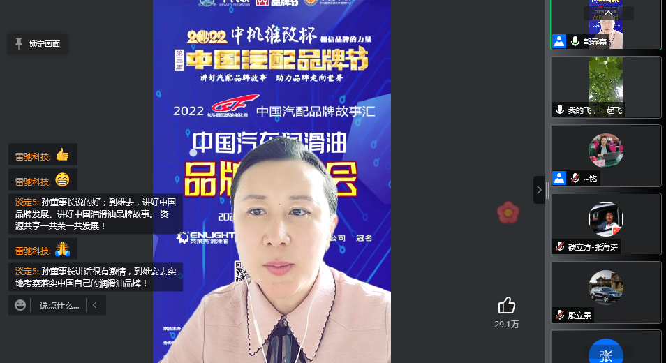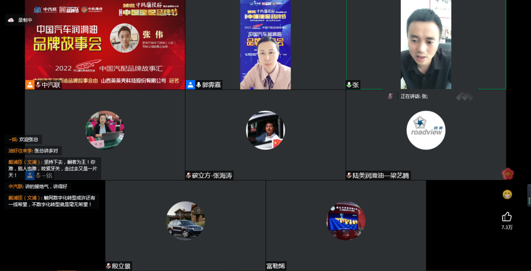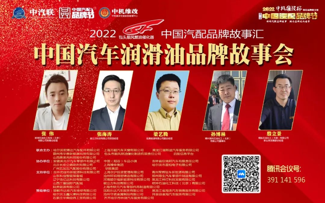 2022年5月23日,“2022 順風燃油催化杯 中國汽配品牌故事會”的第一場活動,由 山西英萊殼科技股份有限公司 特約冠名播出的“2022中國汽車潤滑油品牌故事會在線上成功召開。 歐神石油化工科技(北京)有限公司銷售總經理張偉,碳立方科技有限公司項目經理張海濤,陸美能源有限公司副總經理梁藝騰,博林高科石油化工(北京)有限公司董事長孫博林,領航石油化工(天津)有限公司集團新業(yè)務發(fā)展部總經理殷立景 等五位潤滑油界的嘉賓做了精彩分享,引起了潤滑油從業(yè)人員的廣泛關注,點贊達數(shù)量達到300000個。 2022中國汽車潤滑油品牌故事會由中汽聯(lián)秘書長、中國汽配品牌節(jié)副主席兼秘書長郭霽嘉主持。 |