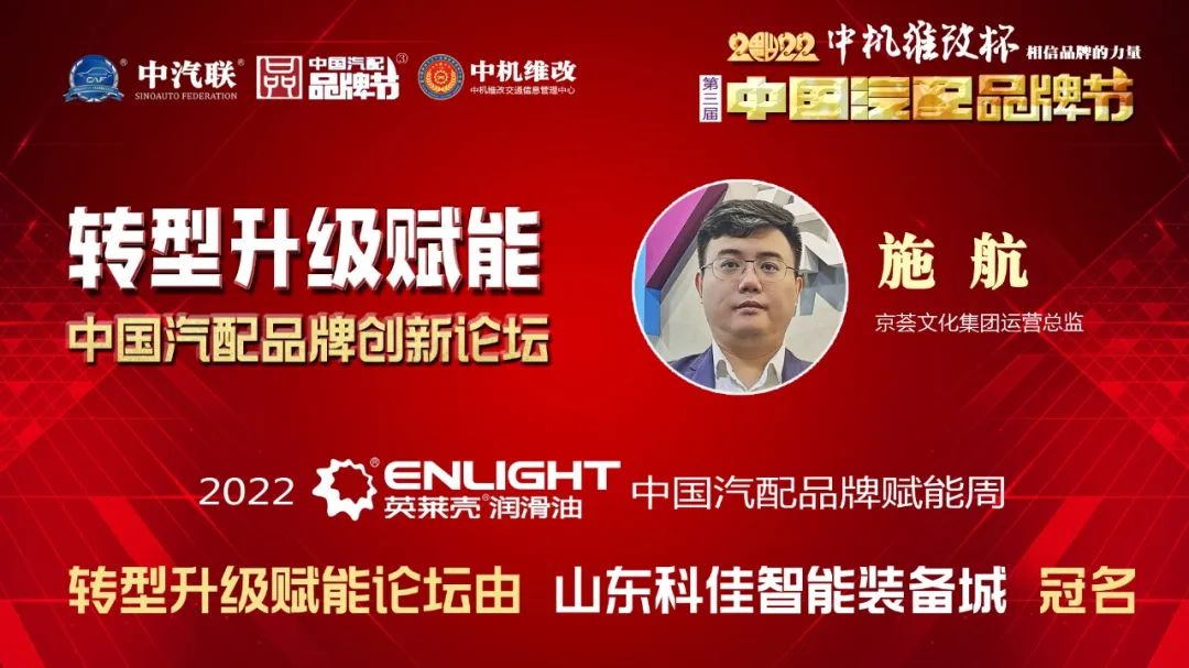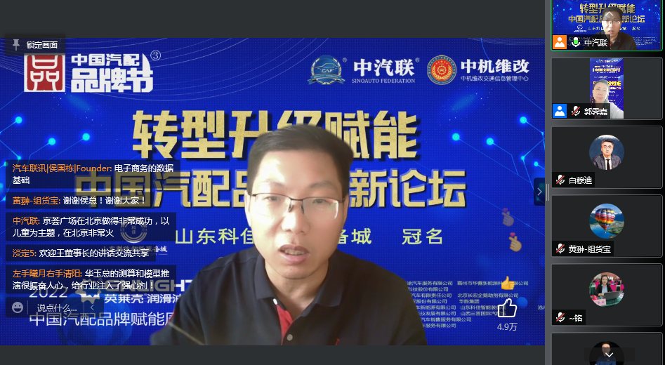 2022年5月20日,“2022 英萊殼杯 中國汽配品牌賦能周”的第五場活動,由 山東科佳智能裝備城 特約冠名播出的“轉(zhuǎn)型升級賦能 · 2022中國汽配品牌創(chuàng)新論壇”在線上成功舉行。 北京酷車小鎮(zhèn)戰(zhàn)略發(fā)展總經(jīng)理趙鋒 、量子數(shù)聚(北京)科技有限公司總裁宋仲偉、月映萬川商業(yè)運(yùn)營機(jī)構(gòu)創(chuàng)始人白穆迪、組貨寶創(chuàng)始人兼CEO黃翀、伏兔科技有限公司董事長王華玉、京薈文化集團(tuán)運(yùn)營總監(jiān)施航 等六位大咖做了精彩分享,得到了眾多專業(yè)市場老板的關(guān)注。 轉(zhuǎn)型升級賦能論壇由中汽聯(lián)執(zhí)行會長、中汽協(xié)汽車技術(shù)研究院院長喬永鋒主持 |