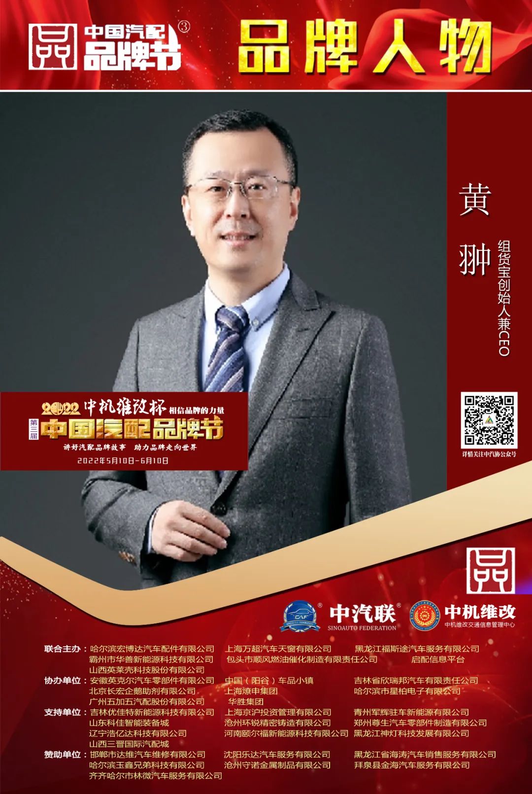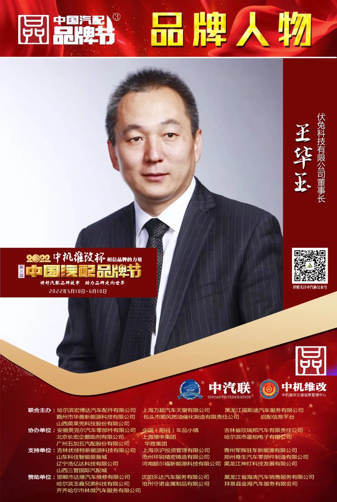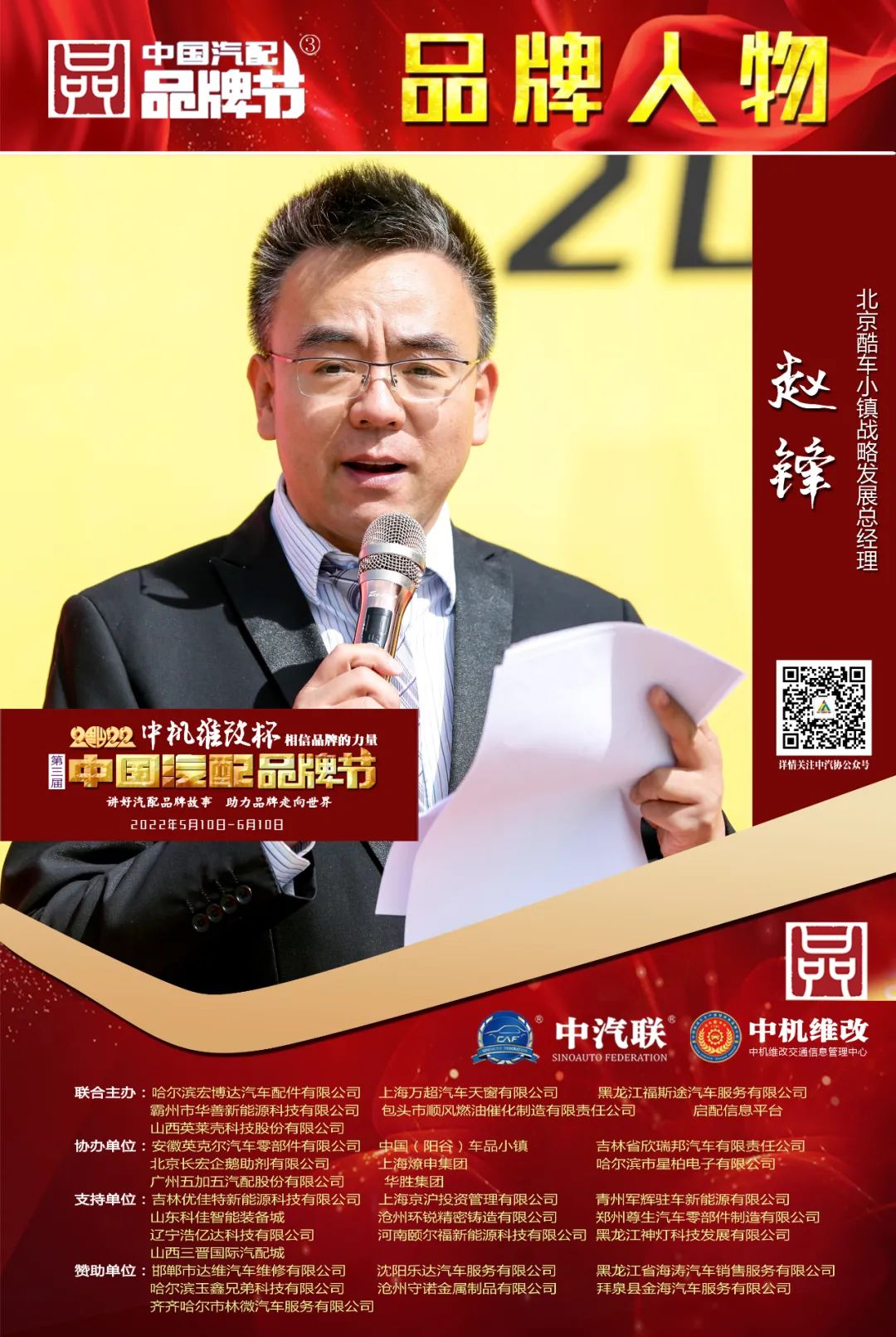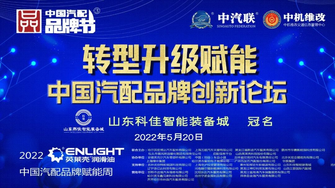 2022中機(jī)維改杯中國汽配品牌節(jié)由中機(jī)維改交通信息管理中心獨(dú)家總冠名,由中汽聯(lián)、中汽配、中機(jī)維改共同主辦;哈爾濱宏博達(dá)汽車配件有限公司、上海萬超汽車天窗有限公司、 黑龍江福斯途汽車服務(wù)有限公司、包頭市順風(fēng)燃油催化器制造有限責(zé)任公司、霸州市華善新能源科技有限公司、啟配信息平臺、山西英萊殼科技股份有限公司聯(lián)合主辦;由中國(陽谷)車品小鎮(zhèn)、華勝集團(tuán)、上海燎申集團(tuán)、吉林欣瑞邦汽車有限責(zé)任公司、安徽英克爾汽車零部件有限公司、北京長宏企鵝助劑有限公司、哈爾濱市星柏電子有限公司、廣州五加五汽配股份有限公司友情協(xié)辦;由吉林優(yōu)佳特新能源科技有限公司、上海京滬投資管理有限公司、青州軍輝駐車新能源有限公司、山東科佳智能裝備城、鄭州尊生汽車零部件制造有限公司、滄州環(huán)銳精密鑄造有限公司、遼寧浩億達(dá)科技有限公司、河南頤爾福新能源科技有限公司、黑龍江神燈科技發(fā)展有限公司、山西三晉國際汽配城、歐神石油化工科技(北京)有限公司、碳立方科技有限公司特別支持;邯鄲市達(dá)維汽車維修有限公司、沈陽樂達(dá)汽車服務(wù)有限公司、黑龍江省海濤汽車銷售服務(wù)有限公司、哈爾濱玉鑫兄弟科技有限公司、滄州守諾金屬制品有限公司、拜泉縣金海汽車服務(wù)有限公司、齊齊哈爾市林微汽車服務(wù)有限公司友情贊助;由德州市鑫雙恒汽車服務(wù)有限公司、??h李春亮汽車維修門市部 、滄州春立汽車服務(wù)有限公司、臨沂富裕汽車服務(wù)有限公司、綏中縣宏騰汽車服務(wù)有限公司、榆樹市鑫運(yùn)程汽車服務(wù)限公司、綏中縣鑫發(fā)汽車服務(wù)有限公司、臨清市浩航汽車服務(wù)有限公司、中能國業(yè)(北京)科技有限公司特別祝賀。
