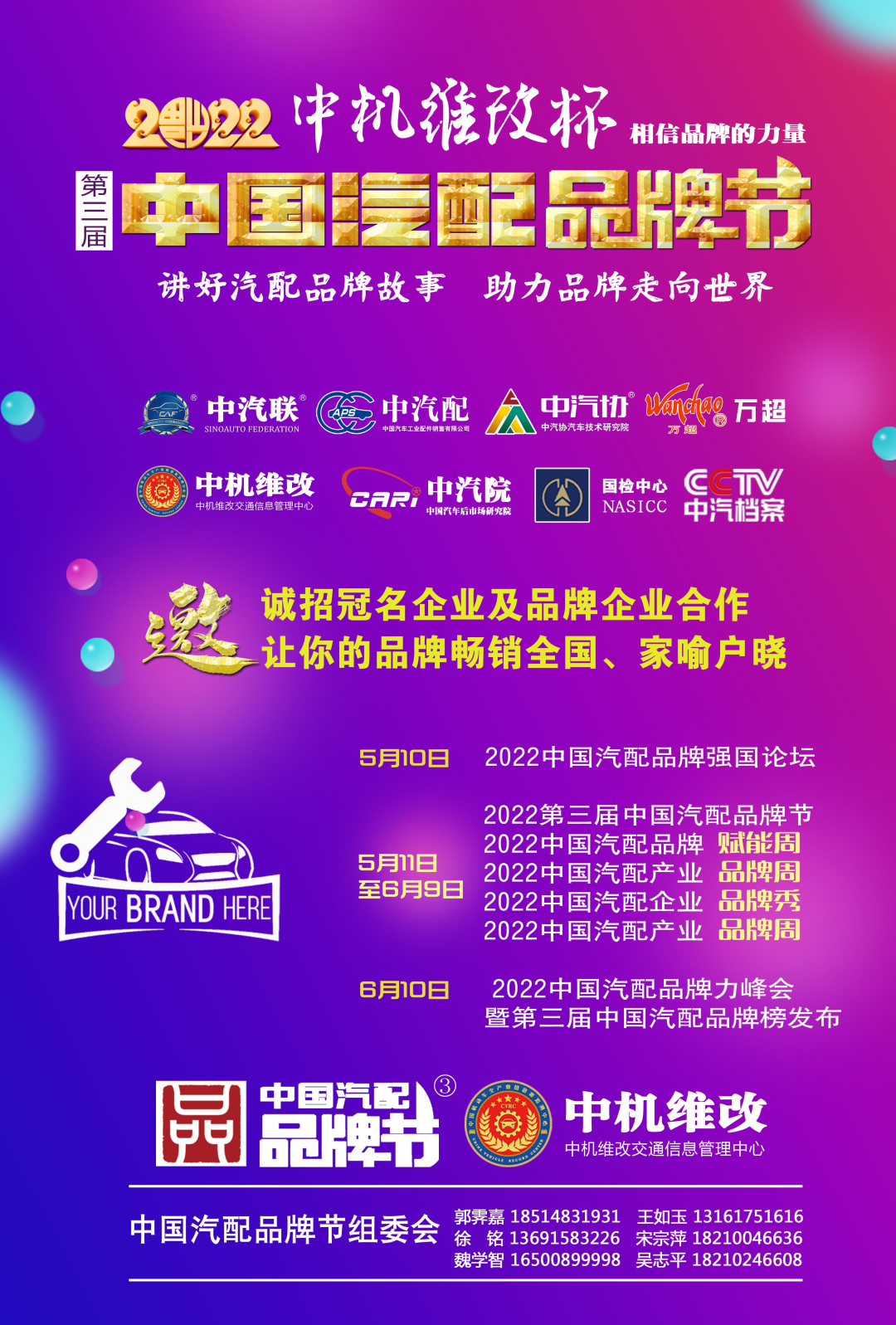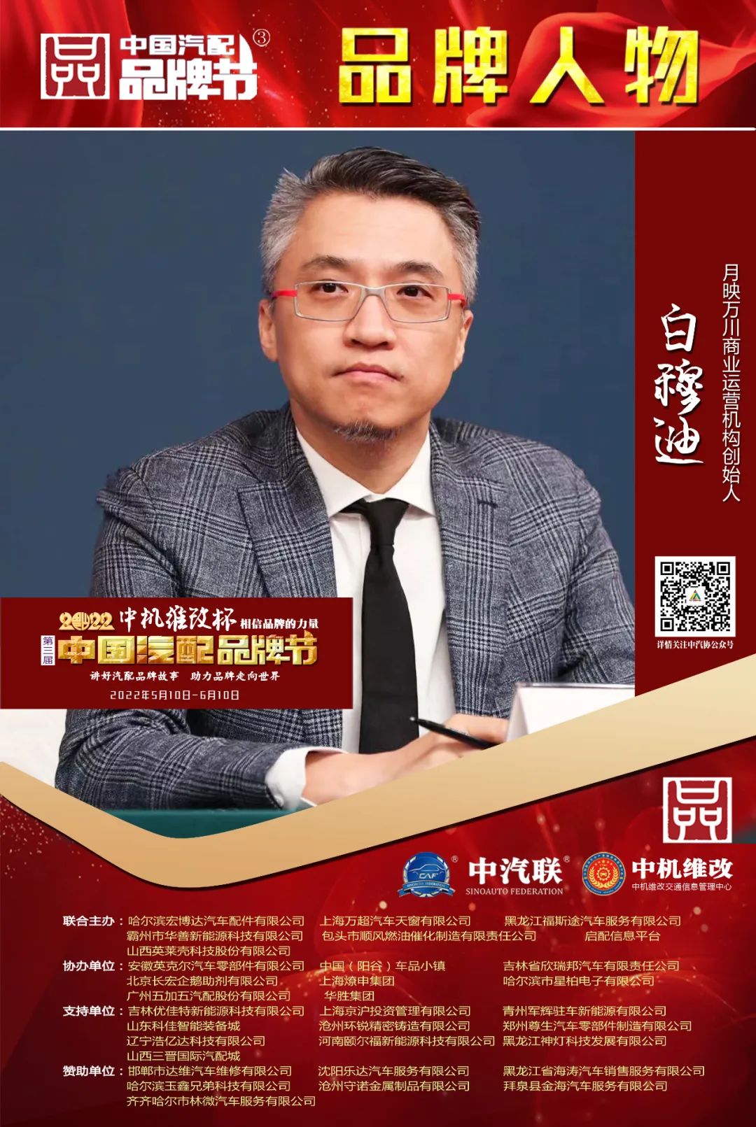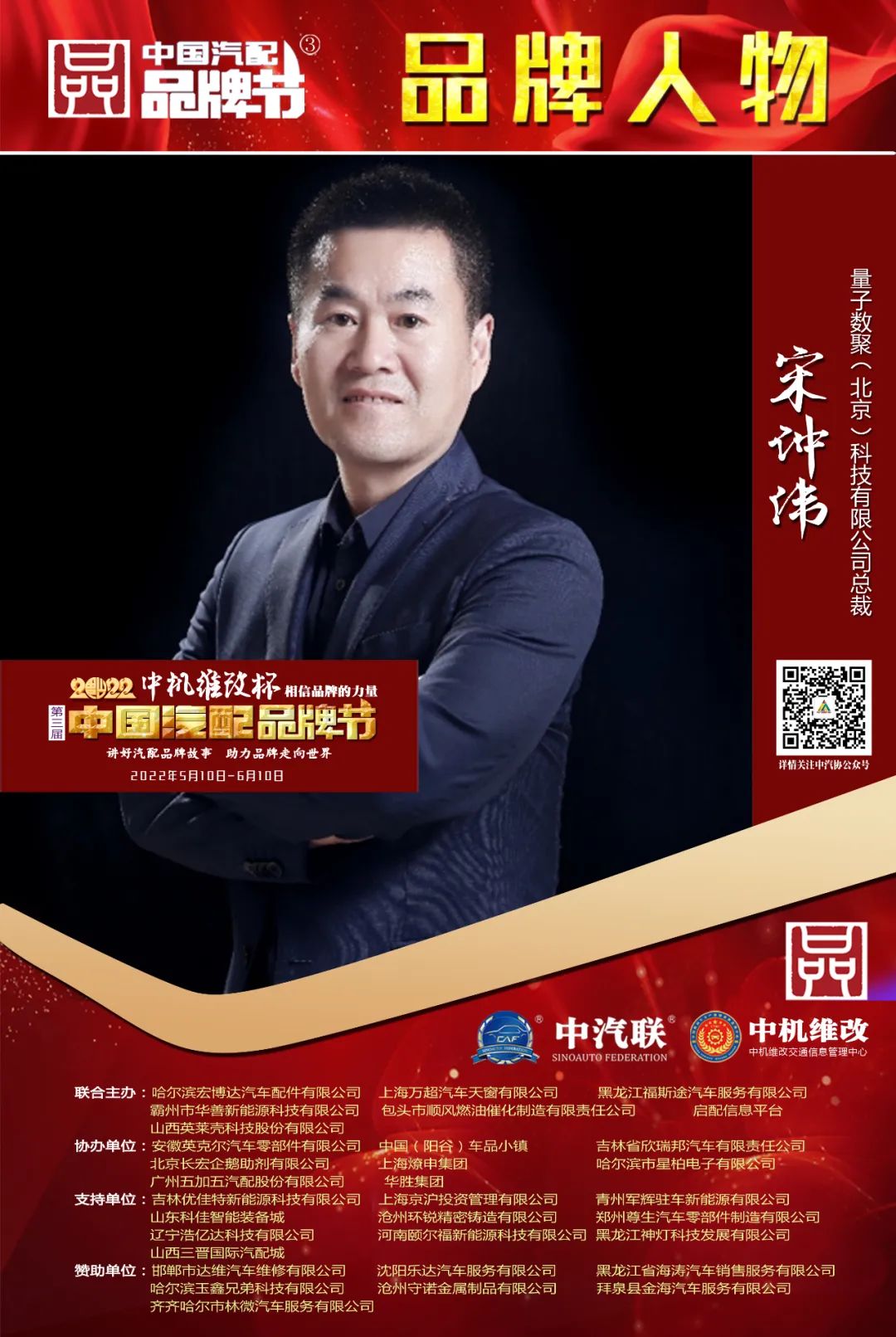 2022中機(jī)維改杯中國汽配品牌節(jié)由中機(jī)維改交通信息管理中心獨(dú)家總冠名,由中汽聯(lián)、中汽配、中機(jī)維改共同主辦;哈爾濱宏博達(dá)汽車配件有限公司、上海萬超汽車天窗有限公司、 黑龍江福斯途汽車服務(wù)有限公司、包頭市順風(fēng)燃油催化器制造有限責(zé)任公司、霸州市華善新能源科技有限公司、啟配信息平臺、山西英萊殼科技股份有限公司聯(lián)合主辦;由中國(陽谷)車品小鎮(zhèn)、華勝集團(tuán)、上海燎申集團(tuán)、吉林欣瑞邦汽車有限責(zé)任公司、安徽英克爾汽車零部件有限公司、北京長宏企鵝助劑有限公司、哈爾濱市星柏電子有限公司、廣州五加五汽配股份有限公司友情協(xié)辦;由吉林優(yōu)佳特新能源科技有限公司、上海京滬投資管理有限公司、青州軍輝駐車新能源有限公司、山東科佳智能裝備城、鄭州尊生汽車零部件制造有限公司、滄州環(huán)銳精密鑄造有限公司、遼寧浩億達(dá)科技有限公司、河南頤爾福新能源科技有限公司、黑龍江神燈科技發(fā)展有限公司、山西三晉國際汽配城、歐神石油化工科技(北京)有限公司、碳立方科技有限公司特別支持;邯鄲市達(dá)維汽車維修有限公司、沈陽樂達(dá)汽車服務(wù)有限公司、黑龍江省海濤汽車銷售服務(wù)有限公司、哈爾濱玉鑫兄弟科技有限公司、滄州守諾金屬制品有限公司、拜泉縣金海汽車服務(wù)有限公司、齊齊哈爾市林微汽車服務(wù)有限公司友情贊助;由德州市鑫雙恒汽車服務(wù)有限公司、??h李春亮汽車維修門市部 、滄州春立汽車服務(wù)有限公司、臨沂富裕汽車服務(wù)有限公司、綏中縣宏騰汽車服務(wù)有限公司、榆樹市鑫運(yùn)程汽車服務(wù)限公司、綏中縣鑫發(fā)汽車服務(wù)有限公司、臨清市浩航汽車服務(wù)有限公司、中能國業(yè)(北京)科技有限公司特別祝賀。