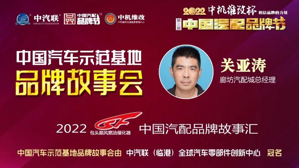 2022中機(jī)維改杯第三屆中國(guó)汽配品牌節(jié)第三周“中國(guó)汽配品牌故事匯”,由 包頭市順風(fēng)燃油催化器制造有限責(zé)任公司 獨(dú)家冠名,“2022 順風(fēng)燃油催化器杯 中國(guó)汽配品牌故事匯”五場(chǎng)故事會(huì)已成功舉行,圓滿(mǎn)畫(huà)上了句號(hào),讓我們一道為中國(guó)自主汽配品牌騰飛加油鼓勁!