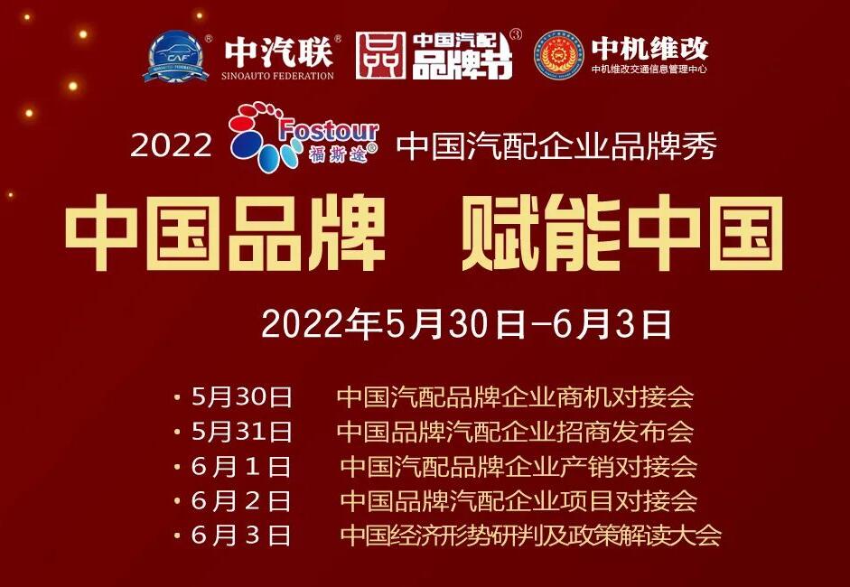 根據(jù)中國(guó)汽配品牌節(jié)組委會(huì)的安排,下周5月30日—6月3日將舉辦“2022 福斯途杯 中國(guó)汽配企業(yè)品牌秀”,由 黑龍江福斯途汽車(chē)服務(wù)有限公司 獨(dú)家冠名,下周一到下周四,我們安排市場(chǎng)品牌企業(yè)的項(xiàng)目對(duì)接及發(fā)布會(huì);應(yīng)廣大汽配企業(yè)的要求,我們?cè)谙轮芪逄貏e安排了一場(chǎng)“中國(guó)經(jīng)濟(jì)形勢(shì)研判及政策解讀大會(huì)”,讓大家了解最新政策及形勢(shì)。