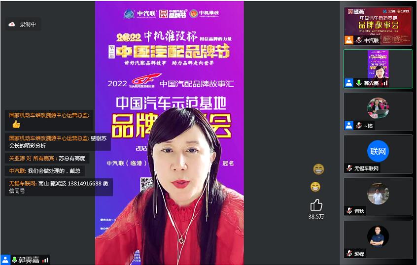 2022年5月27日,“2022 順風(fēng)燃油催化器杯 中國(guó)汽配品牌故事匯”的第五場(chǎng)活動(dòng),由 中汽聯(lián)(臨港)全球汽車(chē)零部件創(chuàng)新中心 特約冠名播出的“2022中國(guó)汽車(chē)示范基地品牌故事會(huì)在線(xiàn)上成功召開(kāi),中國(guó)南山·無(wú)錫車(chē)聯(lián)網(wǎng)小鎮(zhèn)總經(jīng)理甄鴻波、山東科佳智能裝備城銷(xiāo)售總監(jiān)許世婧、包頭瑞盛國(guó)際汽配城總經(jīng)理冒玉龍、廊坊汽配城總經(jīng)理關(guān)亞濤、中國(guó)汽車(chē)流通協(xié)會(huì)有形市場(chǎng)分會(huì)會(huì)長(zhǎng)蘇暉、中汽聯(lián)汽車(chē)區(qū)塊鏈產(chǎn)業(yè)創(chuàng)新中心主任戴浦臣 等六位嘉賓出席品牌故事會(huì)并做了精彩分享,引起了汽車(chē)行業(yè),尤其是專(zhuān)業(yè)市場(chǎng)及產(chǎn)業(yè)園區(qū)的廣泛關(guān)注,點(diǎn)贊數(shù)量達(dá)到390000個(gè)。示范基地品牌故事會(huì)由中汽聯(lián)秘書(shū)長(zhǎng)、中國(guó)汽配品牌節(jié)副主席兼秘書(shū)長(zhǎng)郭霽嘉主持。