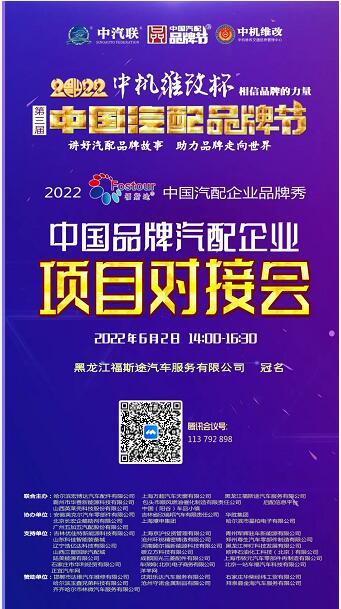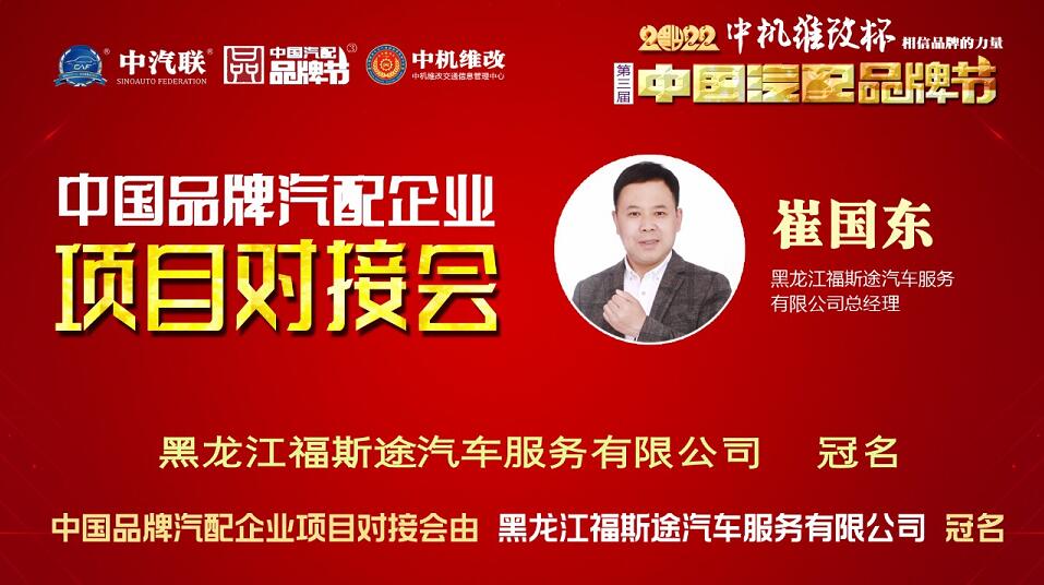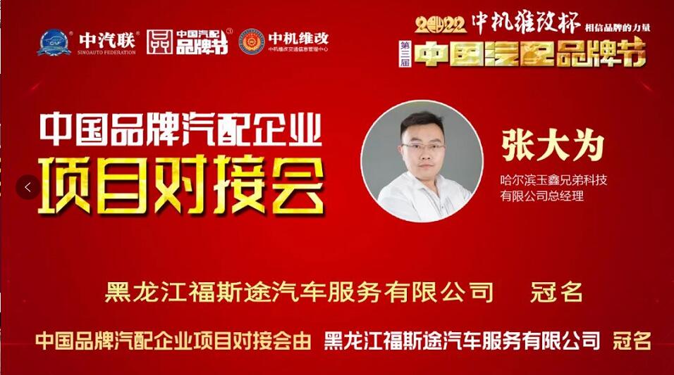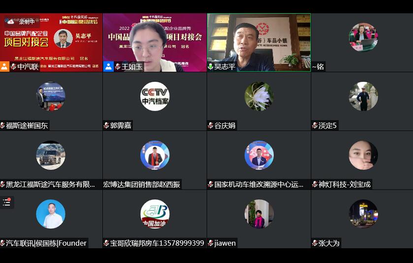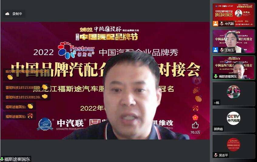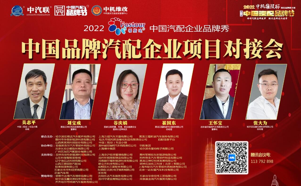 2022年6月2日,“2022 福斯途杯 中國汽配企業(yè)品牌秀”的第四場活動,由 黑龍江福斯途汽車服務(wù)有限公司 特約冠名播出的2022中國品牌汽配企業(yè)項目對接會在線上成功舉行,中國(陽谷)車品小鎮(zhèn)總裁、中汽聯(lián)商業(yè)地產(chǎn)委員會常務(wù)副主席兼秘書長吳志平,黑龍江神燈科技發(fā)展有限公司董事長劉寶成,北京放心聯(lián)合認證中心(北京)有限公司審核部經(jīng)理、國家注冊質(zhì)量、環(huán)境、職業(yè)健康安全、服務(wù)認證審核員谷慶娟,黑龍江福斯途汽車服務(wù)有限公司總經(jīng)理、中國汽配品牌節(jié)副秘書長崔國東,哈爾濱玉鑫兄弟科技有限公司總經(jīng)理張大為 等嘉賓出席汽配企業(yè)品牌秀并做了精彩分享,引起了行業(yè)的廣泛關(guān)注,點贊數(shù)量達到80萬個。2022中國品牌汽配企業(yè)項目對接會由中汽聯(lián)執(zhí)行秘書長、中國汽配品牌節(jié)常務(wù)秘書長王如玉主持。