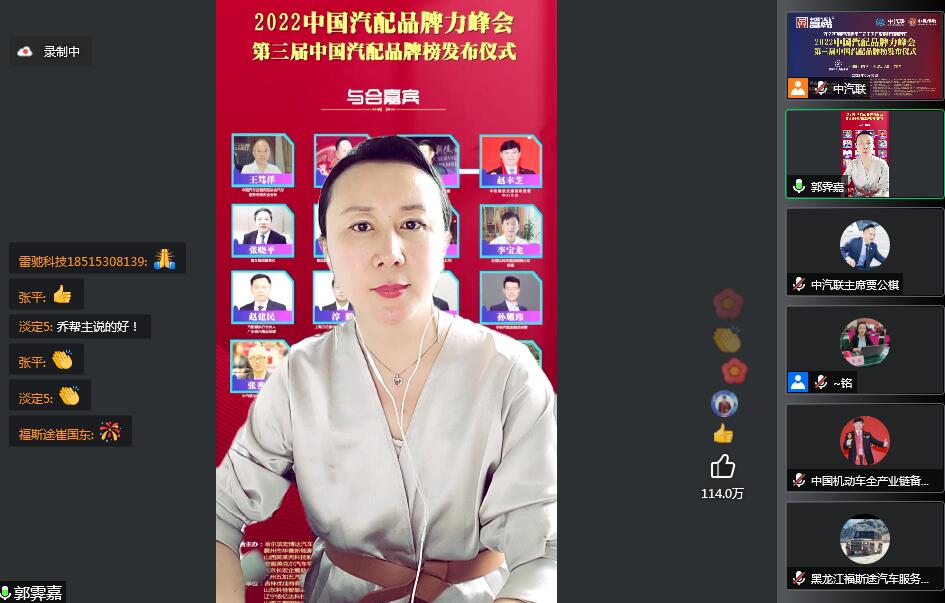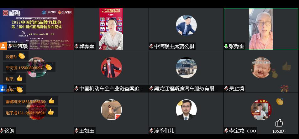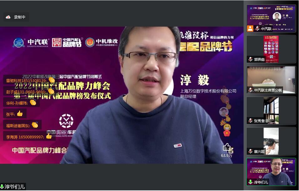 2022年6月10日,由 中國(陽谷)車品小鎮(zhèn) 特約冠名播出的2022中國汽配品牌力峰會暨第三屆中國汽配品牌榜發(fā)布儀式 在線上成功舉行,中國汽車服務(wù)業(yè)委員會會長、中國汽車工業(yè)協(xié)會后市場委員會執(zhí)行副理事長、中國汽車工業(yè)配件銷售有限公司原董事長、中汽聯(lián)會長王篤洋,上海萬超汽車天窗有限公司董事長、中汽聯(lián)主席、中國汽配品牌節(jié)主席賈公棋,國家汽車零部件產(chǎn)品質(zhì)量監(jiān)督檢驗中心副主任、中國汽配品牌節(jié)組委會主任楊貴霖,中國機動車全產(chǎn)業(yè)鏈備案追溯中心主任、中機維改交通信息管理中心主任趙幸芝,浙江省汽摩配商會會長、瑞立集團董事長張曉平,順風(fēng)燃油催化器制造有限公司總經(jīng)理李銘朗,黑龍江福斯途汽車服務(wù)有限公司董事長溫勝義,宏博達(dá)科技集團有限公司總裁李寶龍,汽配貓創(chuàng)始人趙建民,上海萬位數(shù)字技術(shù)股份有限公司副總經(jīng)理淳毅,華利汽配連鎖總經(jīng)理孫耀瑋,中國(陽谷)車品小鎮(zhèn)總裁吳志平,安徽太和晶宮國際汽車城總經(jīng)理蔡興超,中汽聯(lián)示范基地委員會會長張秀奎,中汽聯(lián)秘書長、中國汽配品牌節(jié)副主席兼秘書長郭霽嘉 等汽配大咖出席中國汽配品牌節(jié)閉幕式并做了精彩分享,引起了廣泛關(guān)注,點贊數(shù)量達(dá)到124.2萬個。