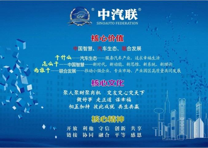 中國(guó)智慧,就是中國(guó)政府及其人民,在淵源流長(zhǎng)的歷史長(zhǎng)河中所去偽存真而發(fā)展起來(lái)的中國(guó)的傳統(tǒng)文化、中國(guó)的價(jià)值觀、中國(guó)的哲思觀,是我們?nèi)w中汽聯(lián)人奮發(fā)向上、創(chuàng)新共生的精神法寶,更是中汽聯(lián)企業(yè)踐行“新時(shí)代、新動(dòng)能、新思維、新系統(tǒng)”等新理論的思想源泉。汽車(chē)生態(tài),就是響應(yīng)國(guó)家節(jié)能減排降碳的號(hào)召,中汽聯(lián)打造綠色低碳的汽車(chē)生態(tài),為汽車(chē)人對(duì)美好生活的向往獻(xiàn)智力、增活力、添動(dòng)力、聚合力,積極推動(dòng)企業(yè)升級(jí)和企業(yè)家幸福成長(zhǎng),構(gòu)建“低碳綠色”的全新生態(tài)。聯(lián)合發(fā)展,就是中汽聯(lián)要幫助所有的合作伙伴協(xié)同發(fā)展、融合發(fā)展、共同發(fā)展,共同移動(dòng)汽車(chē)產(chǎn)業(yè)的高質(zhì)量發(fā)展。