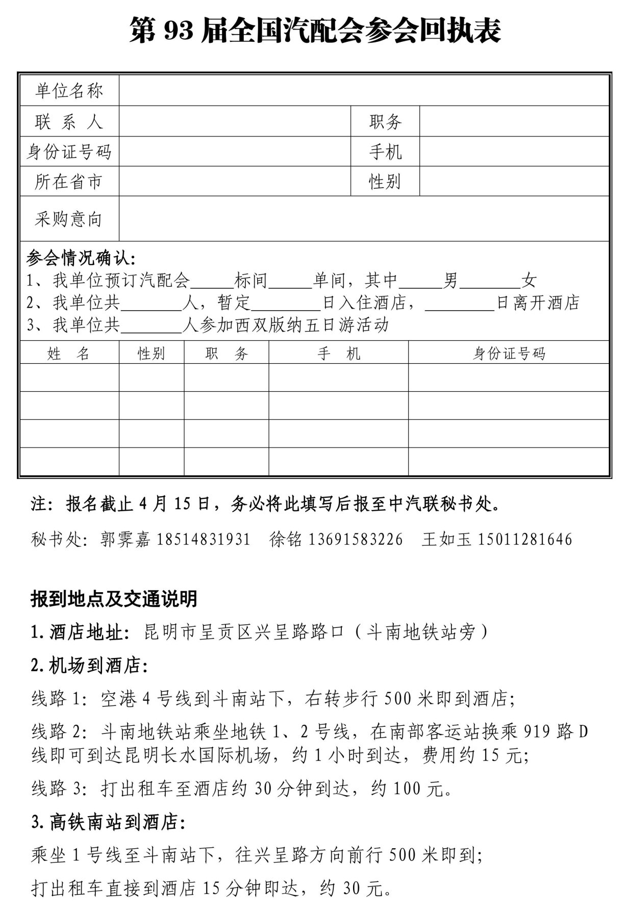 關(guān)于昆明第93屆全國(guó)汽車配件交易會(huì)的參會(huì)通知