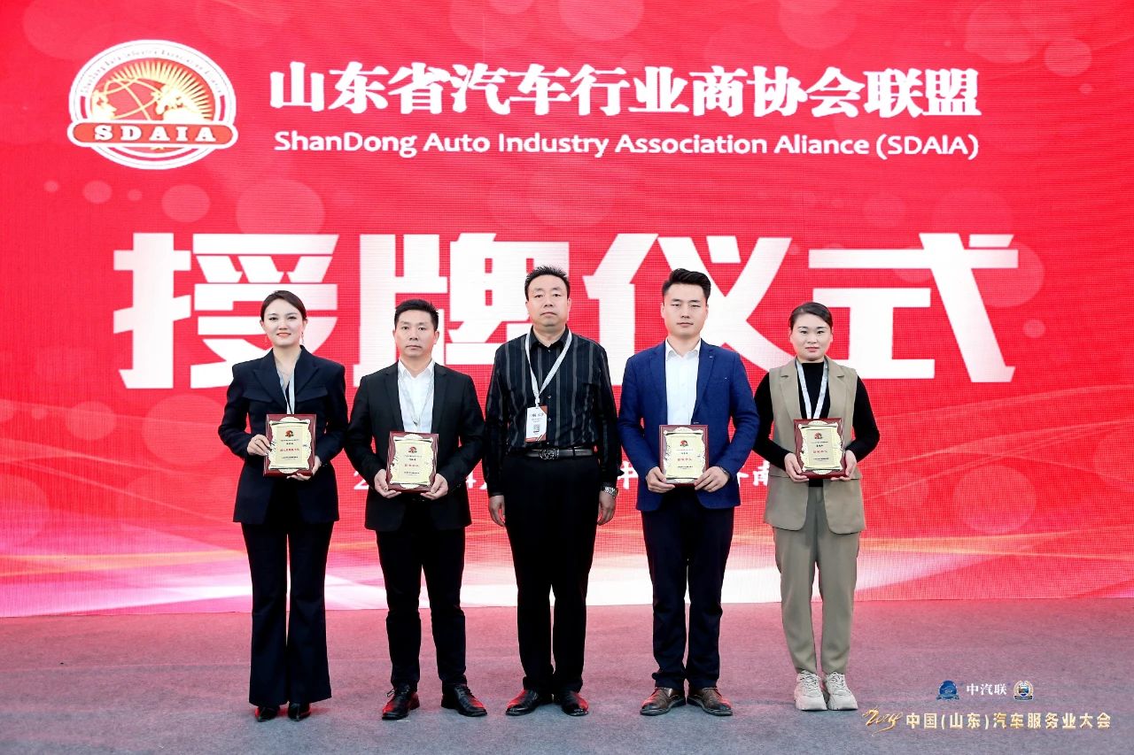 山東省汽車行業(yè)商協(xié)會(huì)聯(lián)盟主席倪付慶為副主席兼秘書長(zhǎng)許世婧、副秘書長(zhǎng)劉翰洋、副秘書長(zhǎng)楊承浩、副秘書長(zhǎng)梁曉梅頒發(fā)銅牌。